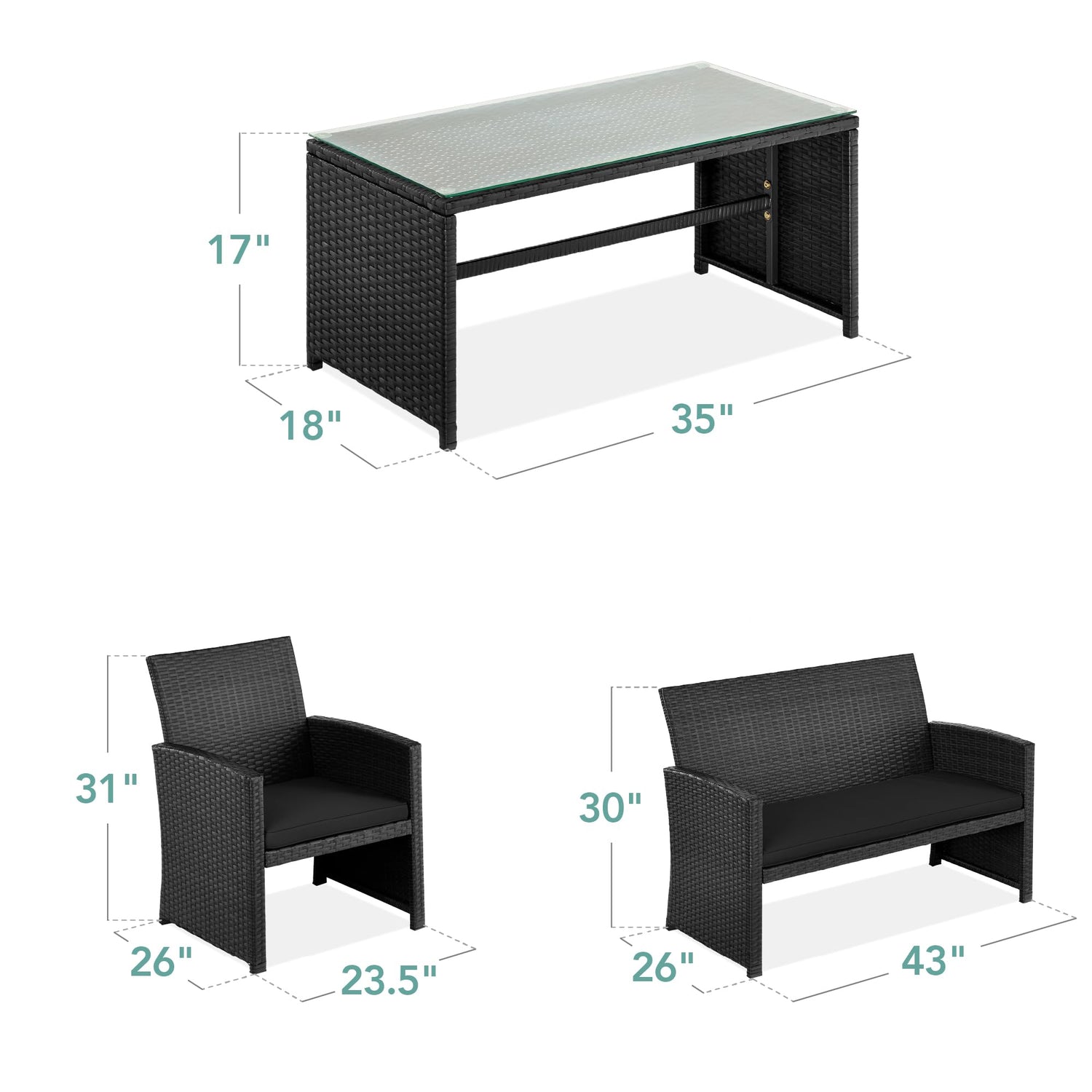 Best Choice Products 4-Piece Outdoor Wicker Patio Conversation Furniture Set for Backyard w/Coffee Table, Seat Cushions - Black/Black