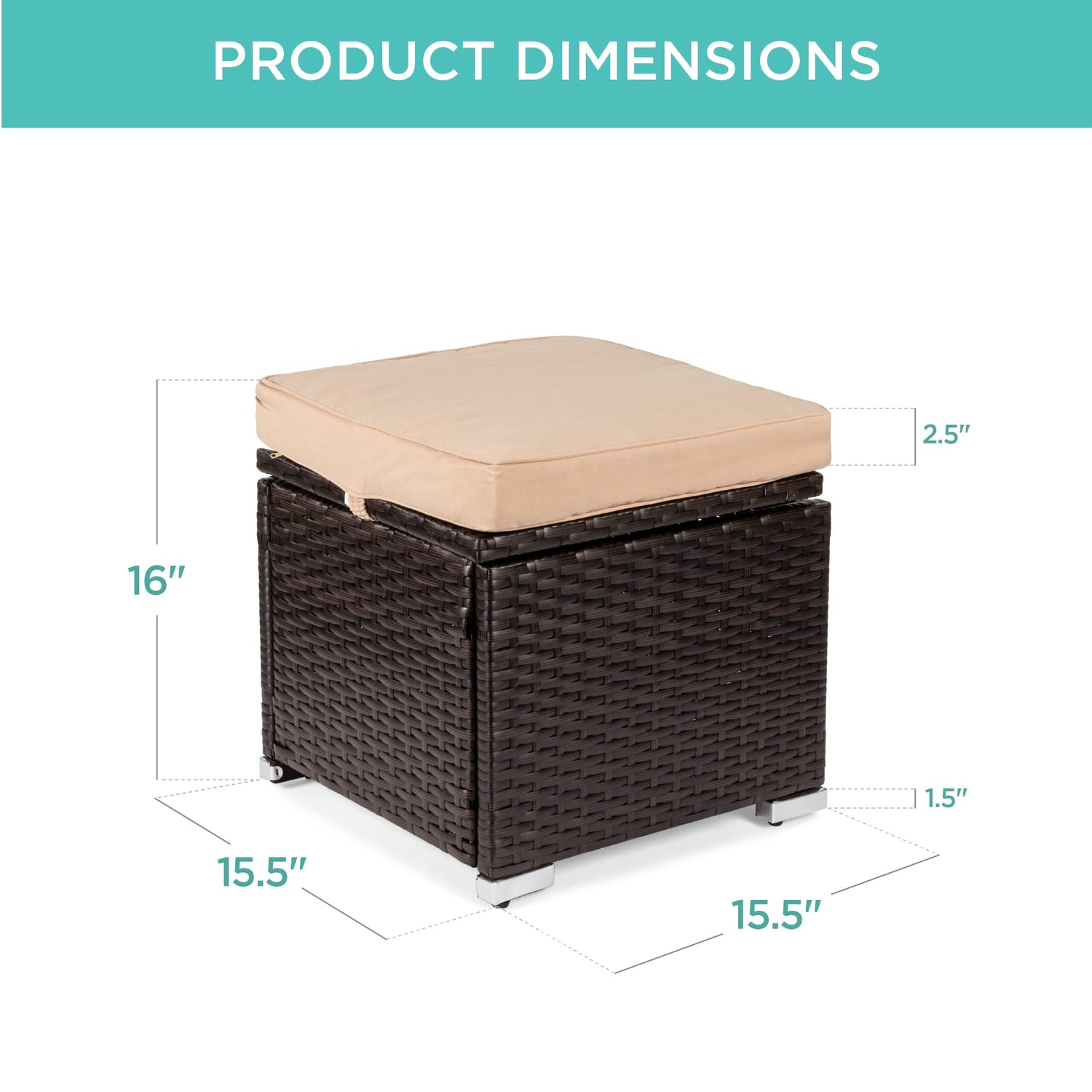 Best Choice Products Set of 2 Wicker Ottomans, Multipurpose Outdoor Furniture for Patio, Backyard, Additional Seating, Footrest, Side Table w/Storage, Removable Cushions - Brown/Beige