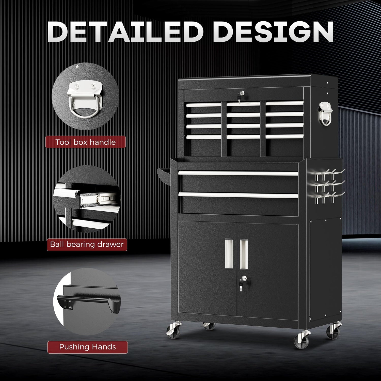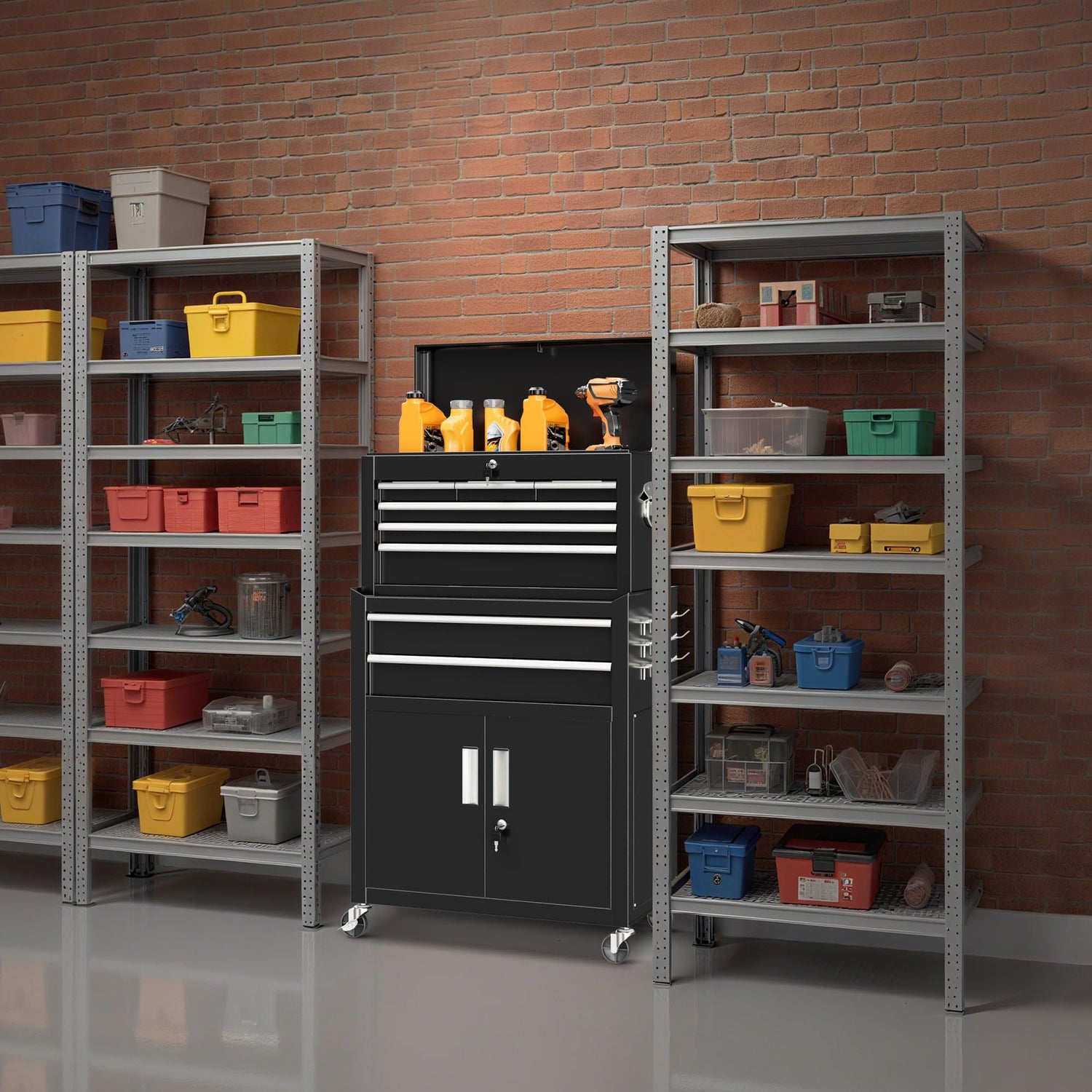 Bonusall 8 Drawer Rolling Tool Chest and Cabinet Combo,Heavy-Duty Metal Garage Tool Chest with Wheels and 2 Doors,2-in-1 Top Box and Roller Cabinet Combo for Garage, Workshop, Warehouse-Black