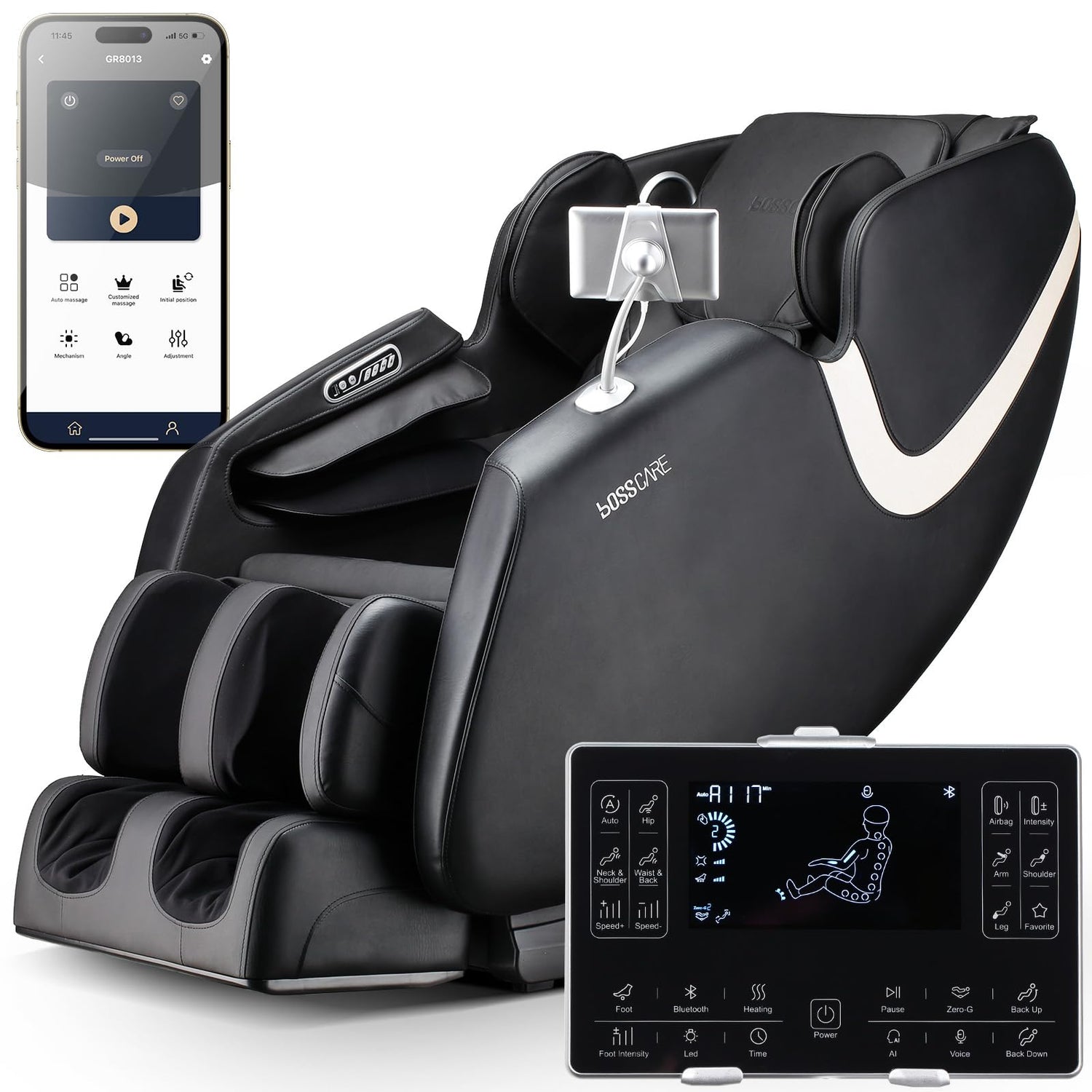 BOSSCARE 2025 Massage Chair Full Body, AI APP Control Shiatsu Zero Gravity Massage Chair with Foot Roller, Back Calf Heated, Bluetooth Speaker, Relaxing Massaging Recliner for Friend Family