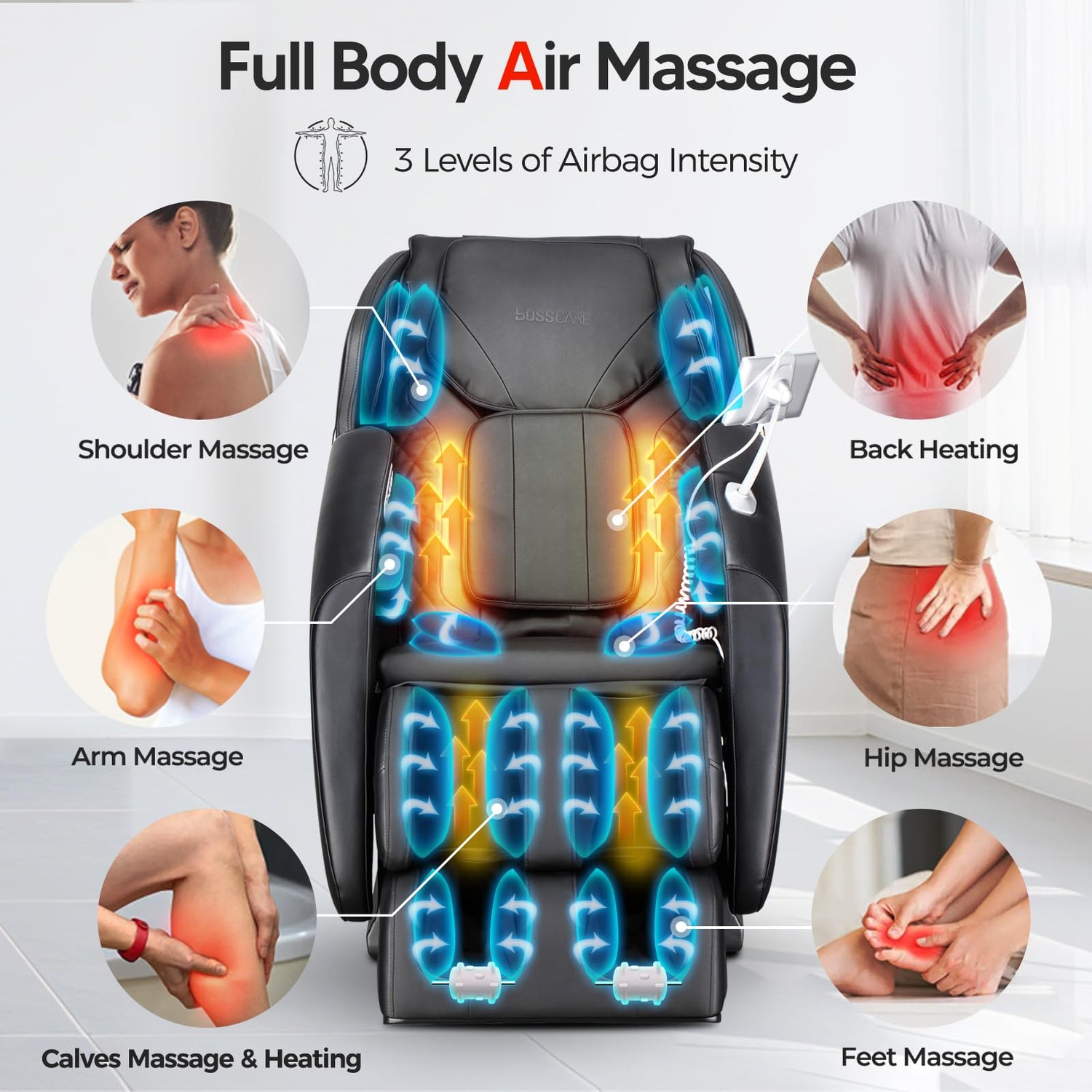 - 【3-Zero Gravity Recline & Full-Body Airbags】Recline into zero-gravity angles to reduce spinal pressure while airbags massage shoulders, arms, hips, calves, and feet. 3 adjustable air pressure levels enhance circulation, paired with lower back heat to melt away tension.