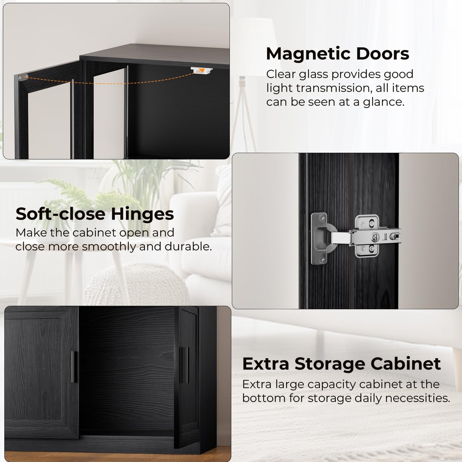 - 【Large Capacity & Partition Storage】 Featuring three thick shelves and enclosed storage cabinet. The magnetic acrylic doors offer easy access to items while blocking dust. Ideal for categorizing tableware, collections, books and trophies. Use this curio cabinet making your home tidy and orderly.