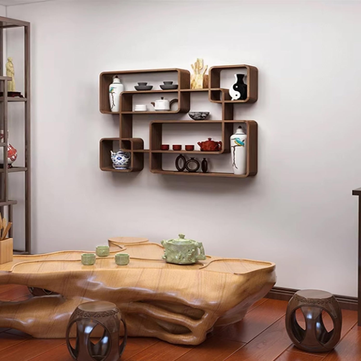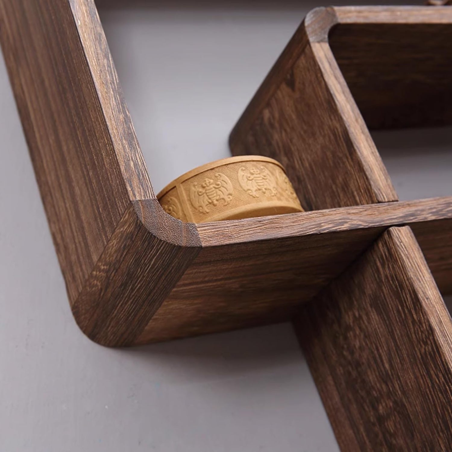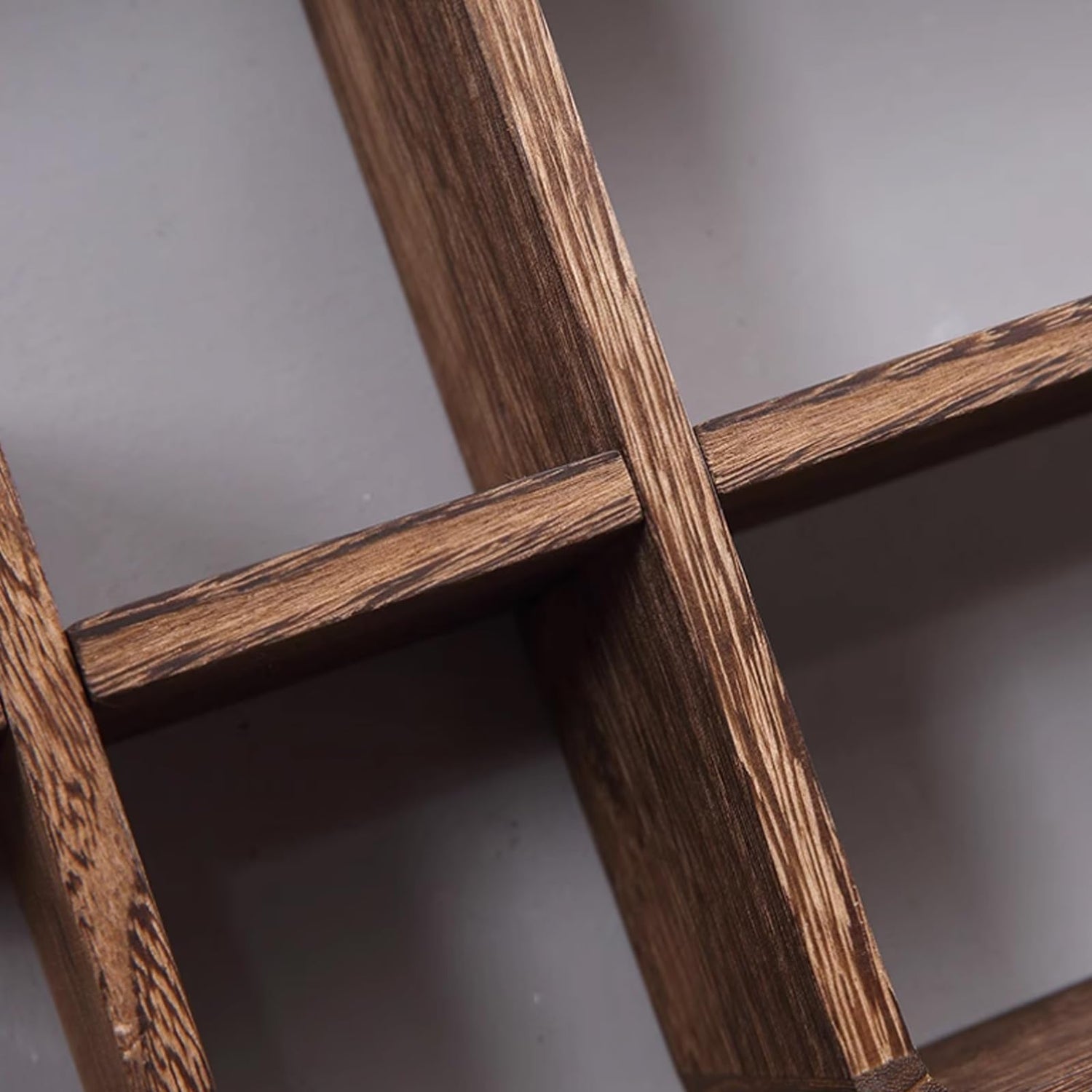Because the product is carbonized, please use a dry towel to wipe it during daily care, and never use a wet towel to avoid fading. This wall-mounted display shelf has multiple compartment slots of different shapes and sizes, providing a variety of display options for displaying small items of different sizes.