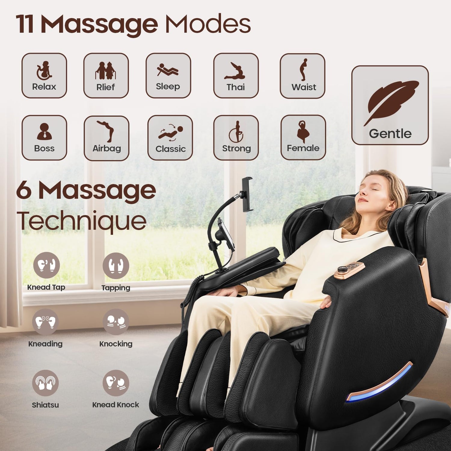 - 【6 Massage Modes & 11 Massage Techniques】This shiatsu massage chair features 6 auto programs and 11 massage techniques including kneading, tapping, and rolling, offering you a spa-level experience right at home. Its 3-level airbag compression system relieves tension from shoulders to calves, giving a complete massager chair for full body therapy that feels like real human touch.