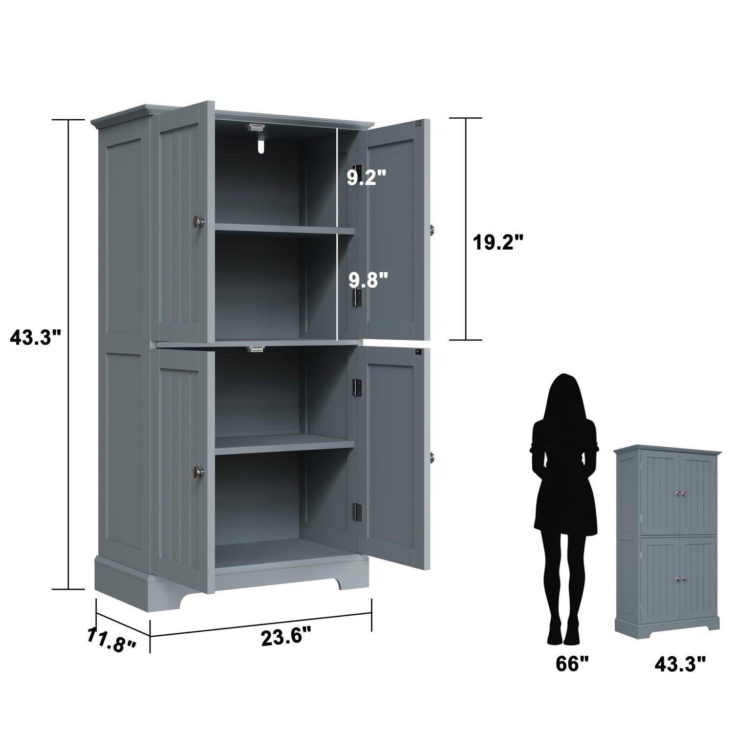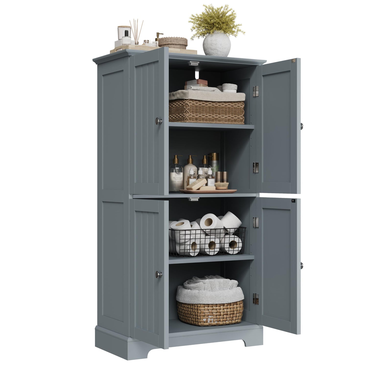 ChooChoo Bathroom Floor Cabinet, Modern Bathroom Storage Cabinet with 4 Doors and Adjustable Shelves, Freestanding Cupboard for Living Room, Grey