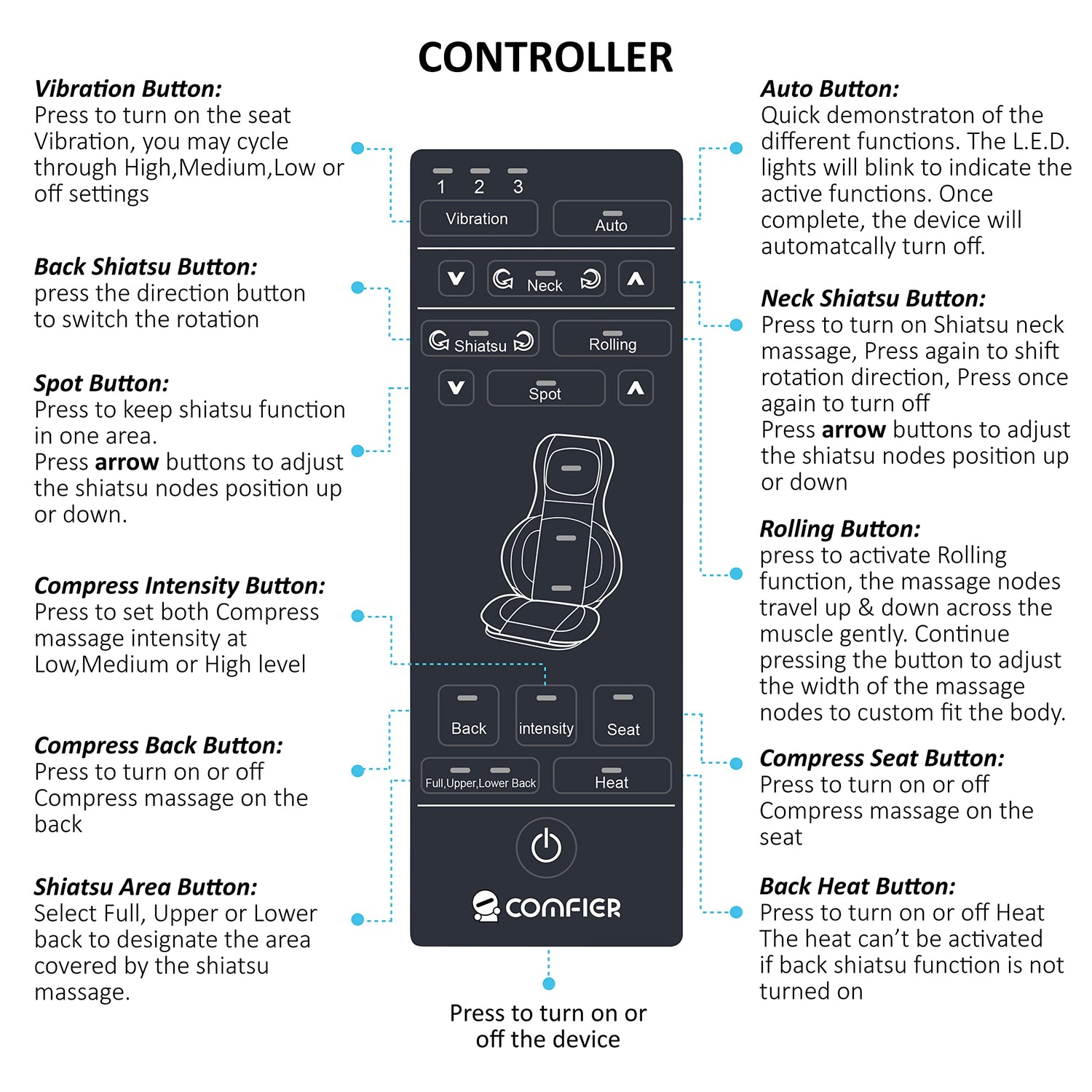 - ULTIMATE COMFORT -Strap the Comfier Shiatsu massager to your favorite chair, or put in on any sofa,couch,recliner, office chair to get the ultimate comfort seat at home or in office. A Perfect gift for mom, father, men, women, friends who need a massage. For any reason, if this chair massage pad does not meet your expectations, return it for refund within 30 days.