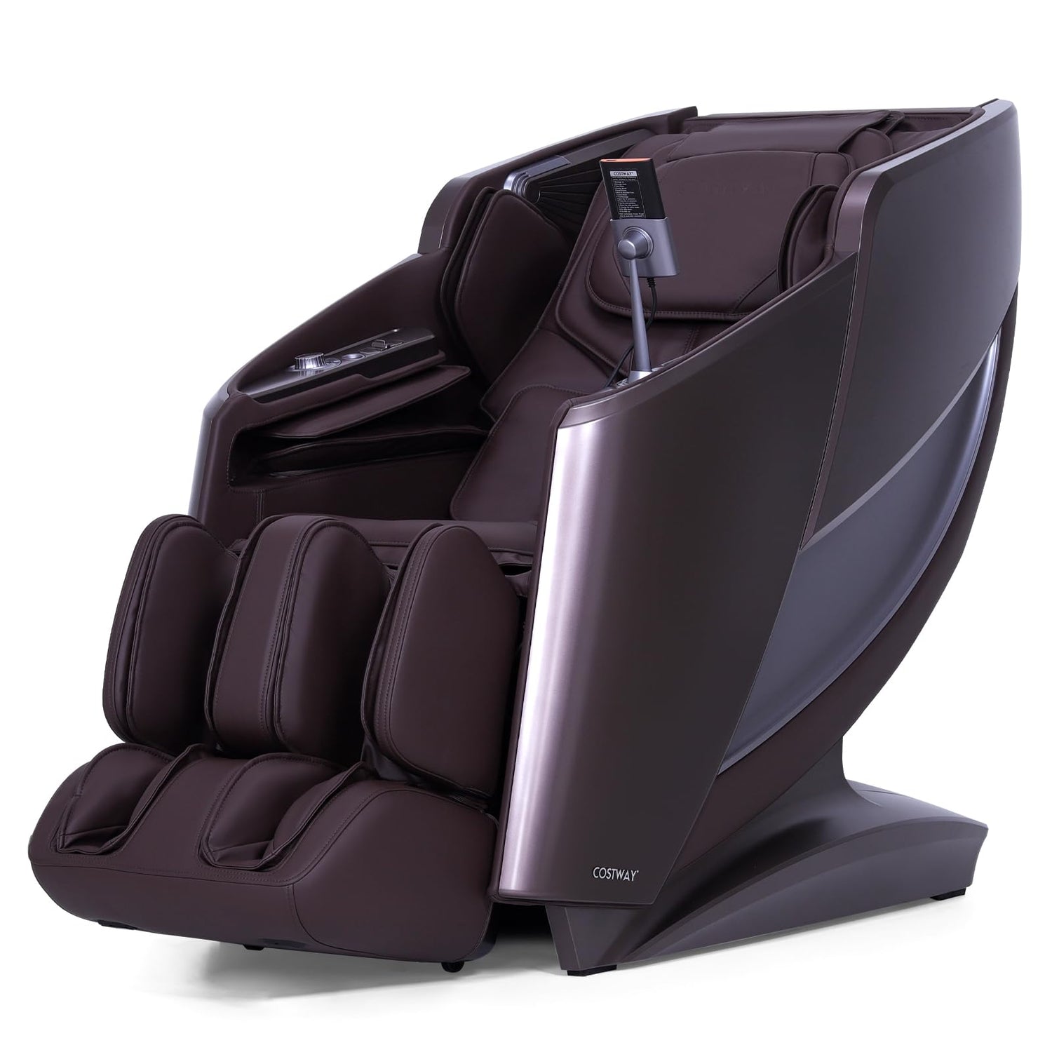 COSTWAY 4D Flexible Track Massage Chair, Full Body Zero Gravity Massage Recliner w/Airbags, Waist Heater, Electric Calf Frame, Auto Body Scan, Wireless Charging Station, Thai Stretching (Gray)