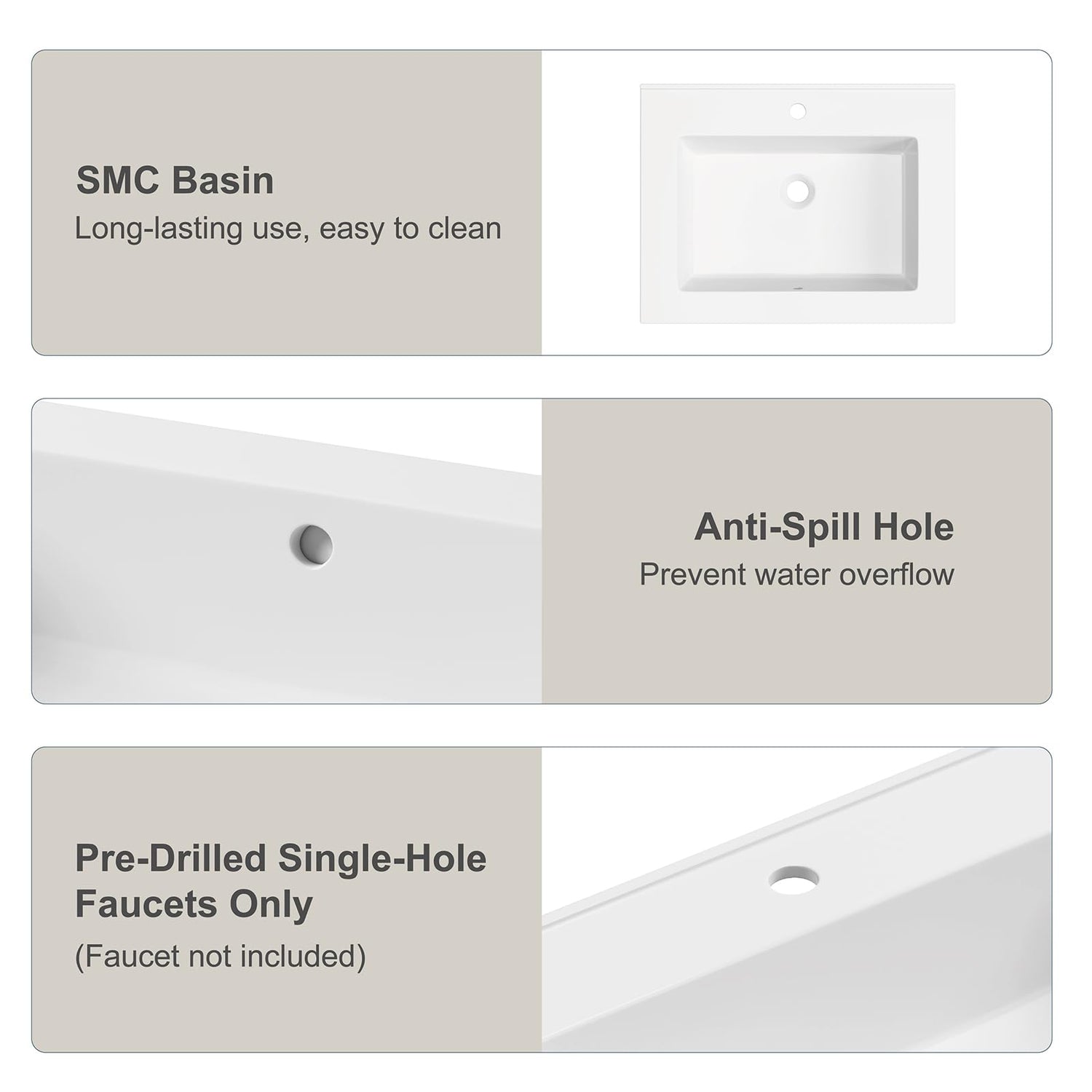 - Sturdy & Durable - The 24 inch bathroom vanity with sink, made of MDF, is sturdy and durable. With its wear-resistant and corrosion-resistant properties, it is also easy to maintain and clean.