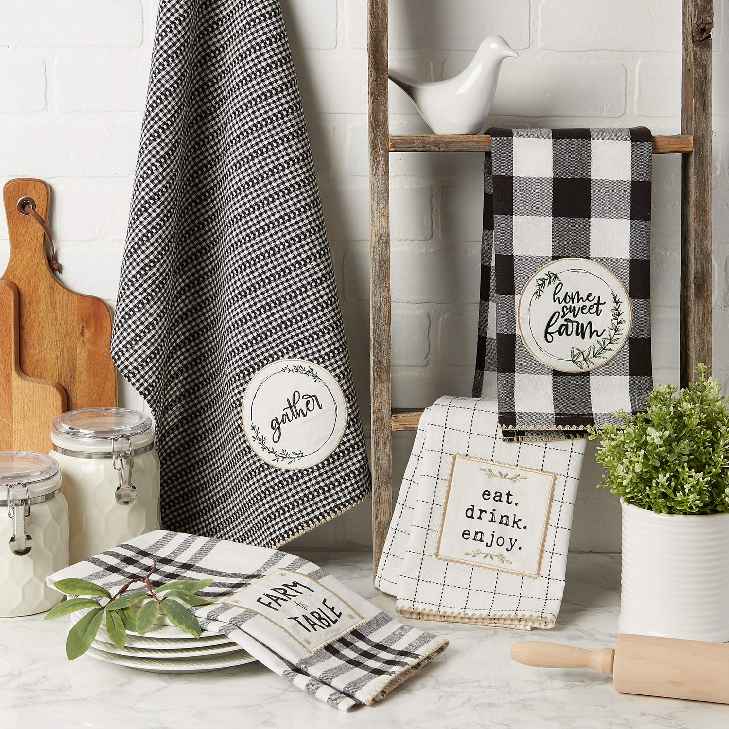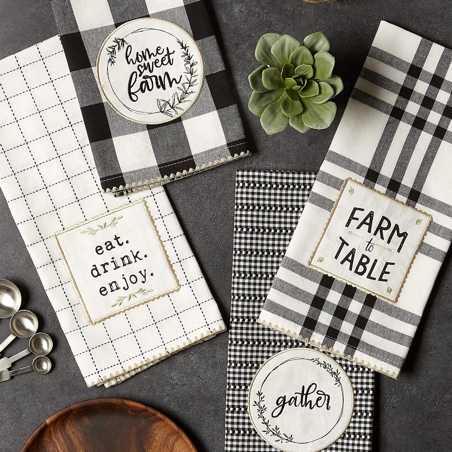 DII Home Sweet Farmhouse Kitchen Collection, Dishtowel Set, 18x28, Black, 4 Count