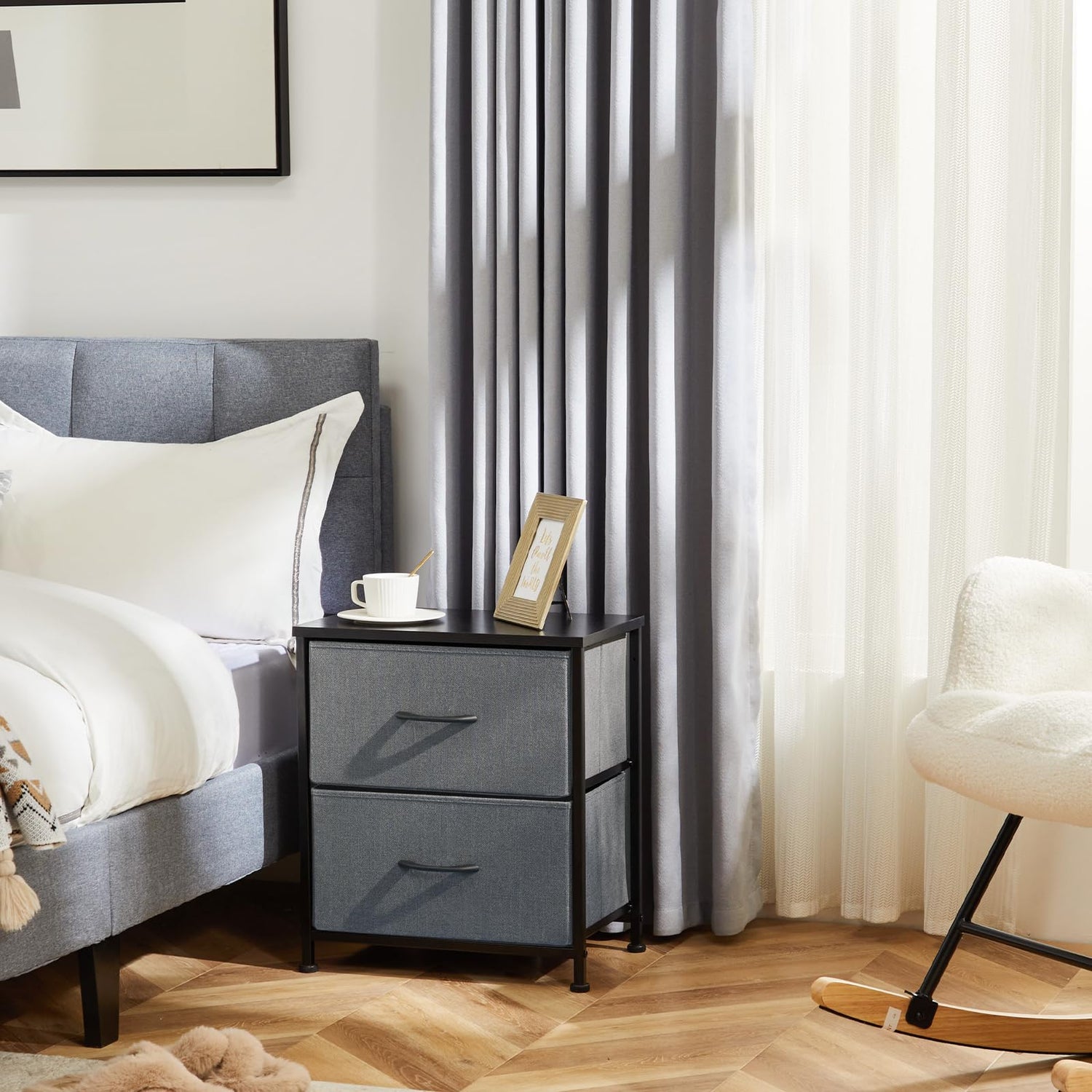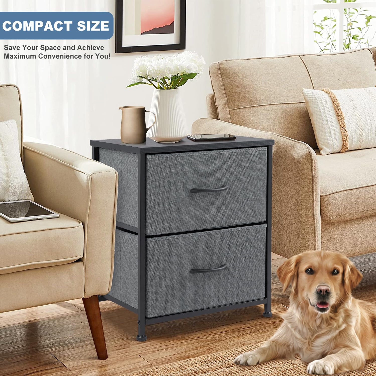 DUMOS Nightstand Set of 2, Small Dresser with 2 Fabric Drawers Side Bedroom End Table Kids Bedside Storage Furniture for 25 inch Tall Night Stand for Closet, Entryway, College Dorm, Grey, M-2 Pack