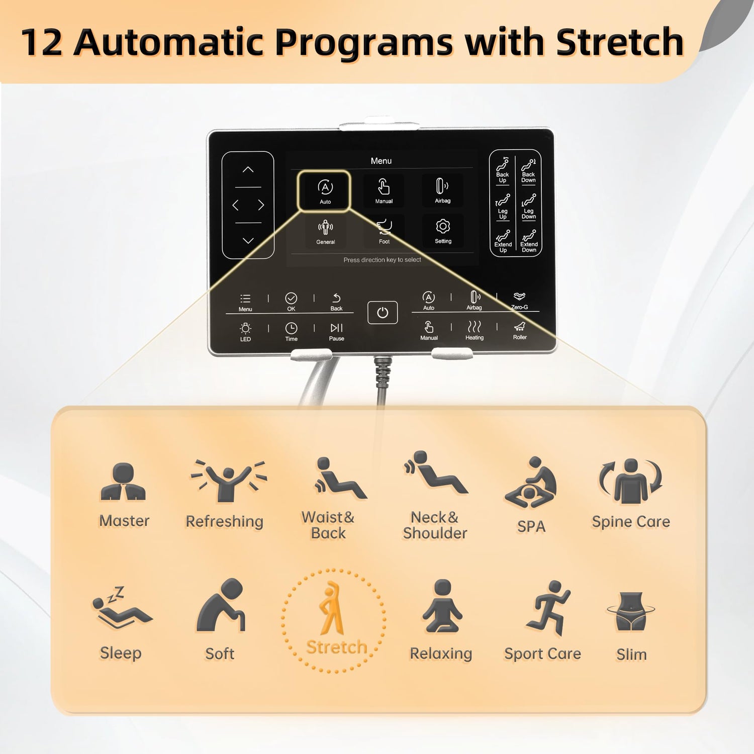 - Zero Gravity Massage chair preset ๐๐ ๐๐ฎ๐ญ๐จ๐ฆ๐๐ญ๐ข๐ ๐ฆ๐จ๐๐๐ฌ, such as stretch mode and can set the time etc. Sleep mode is full body massage with swing function, soft massage helps to have a nice nap