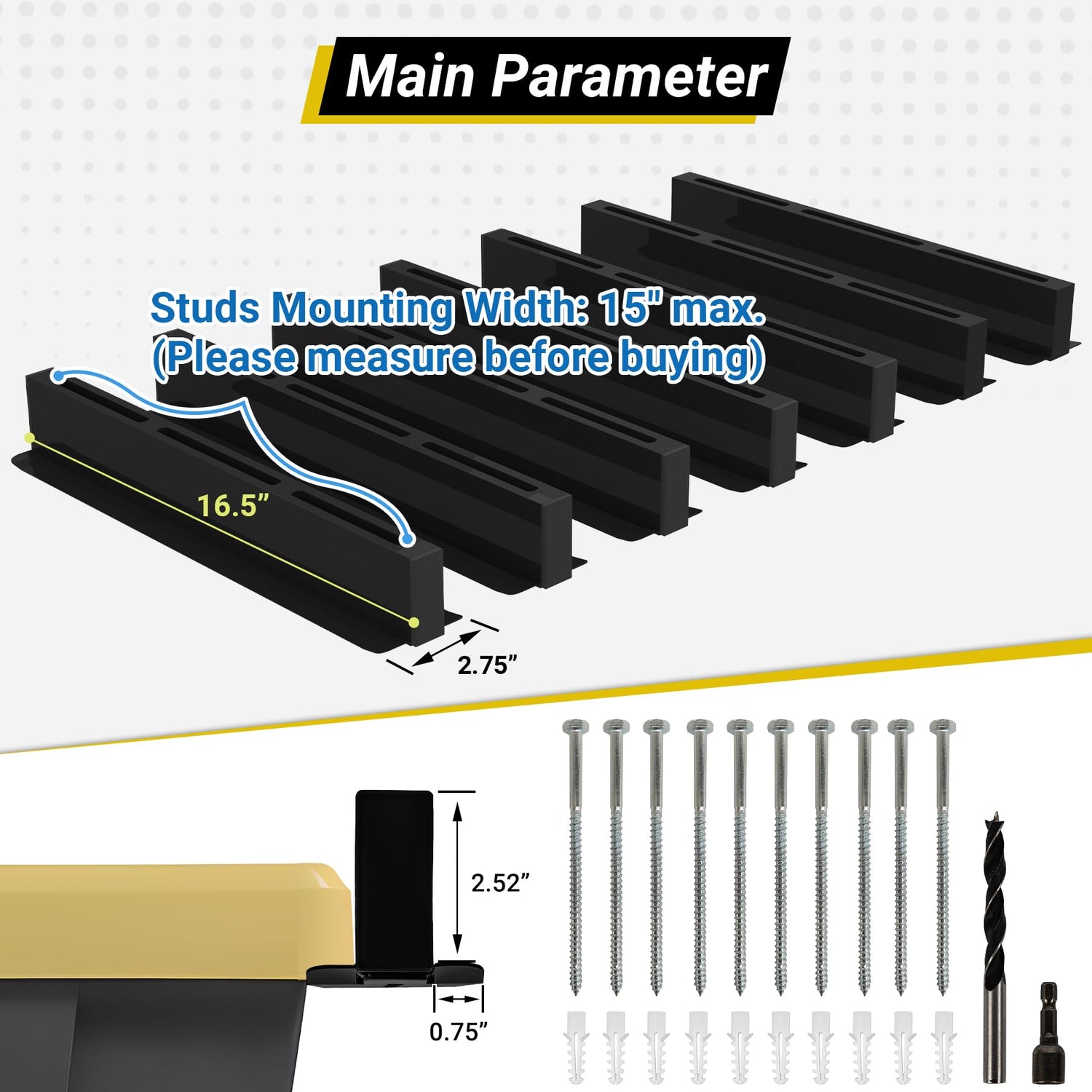 - Expandable T-shaped Design: Our ceiling storage racks feature a unique T-shaped design. The garage ceiling storage hold more boxes if mounted horizontally, so you can buy an extra set for extra storage space ( Product Dimension: 16.6”L x 2.75”W x 2.8”H)
