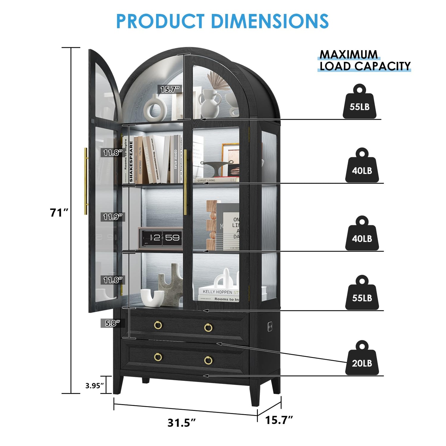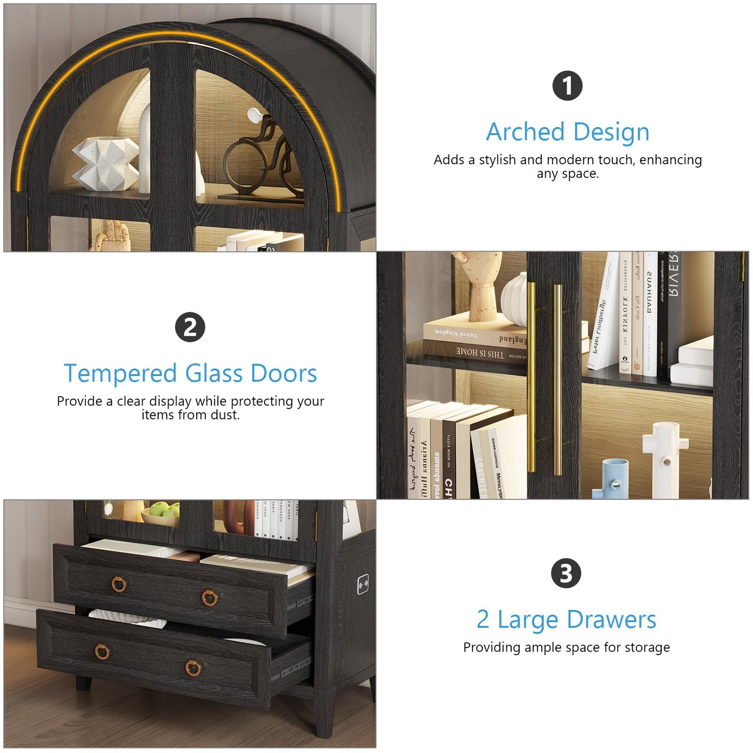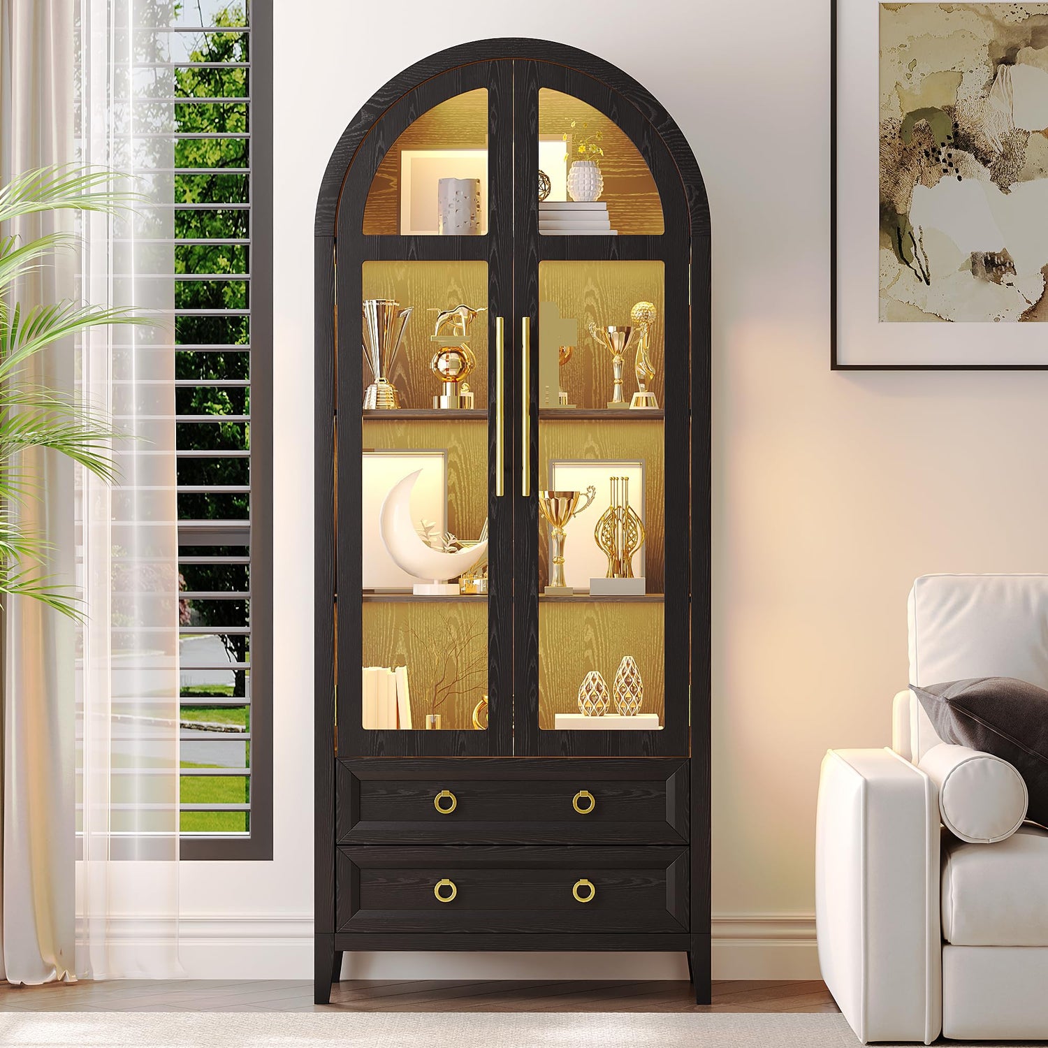 - Elegant Arched Top Design: A sophisticated arched top adds a unique, stylish touch, making this cabinet a standout modern piece that enhances any living room, office, or bedroom