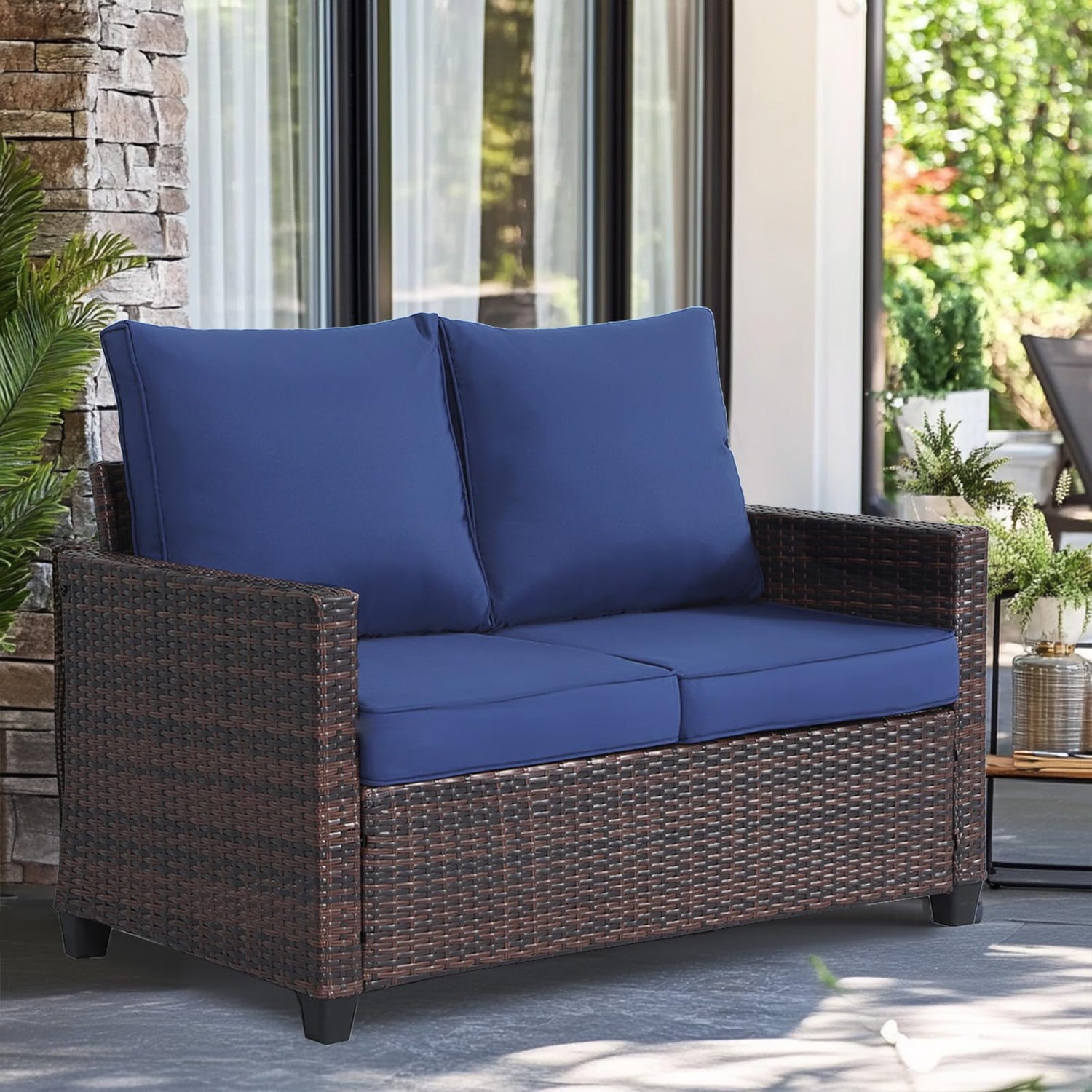 EortheX Outdoor Patio Loveseat,All-Weather Wicker Loveseat with Cushions – Rattan Outdoor 2 Person Sofa Furniture for Garden, Balcony, and Deck,Sectional Patio Love seat Sofa Set - Blue