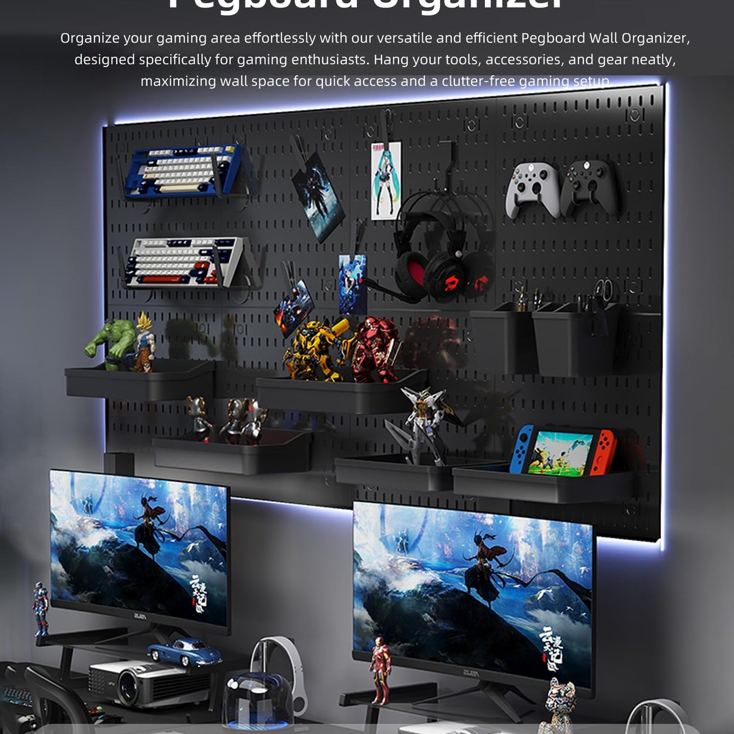 EVDBOBO Wall Organizer Peg Board - Elevate And Declutter Your Gaming And Office - Create A Perfectly Structured Space(Black)