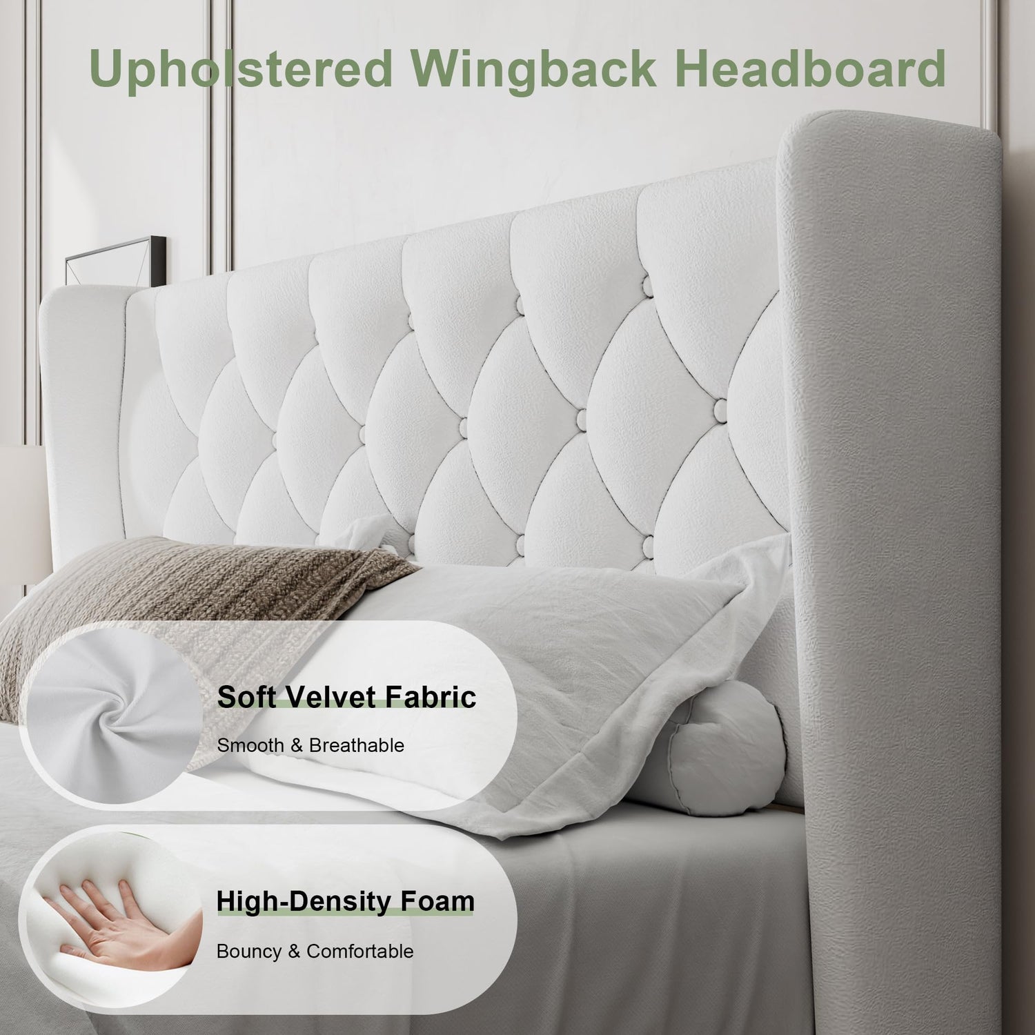 - Elegant Wingback Design: Featuring a sophisticated wingback headboard with classic button tufting, this bed frame adds a touch of luxury to any bedroom while blending seamlessly with various decor styles