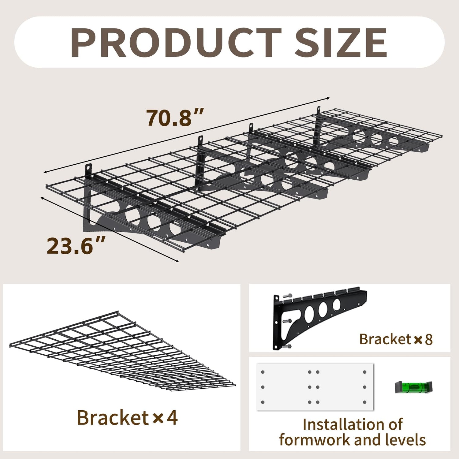 - 2. Easy to Install - Can be Installed Quickly: this high capacity garage wall shelving requires no tedious steps, say goodbye to installation anxiety - we provide positioning template and balancing meter. Drill holes for positioning, fix the brackets and place the partitions, three steps to complete the assembly. This will greatly save your time and energy, choose this wall storage shelves, choose a more relaxed and convenient lifestyle!