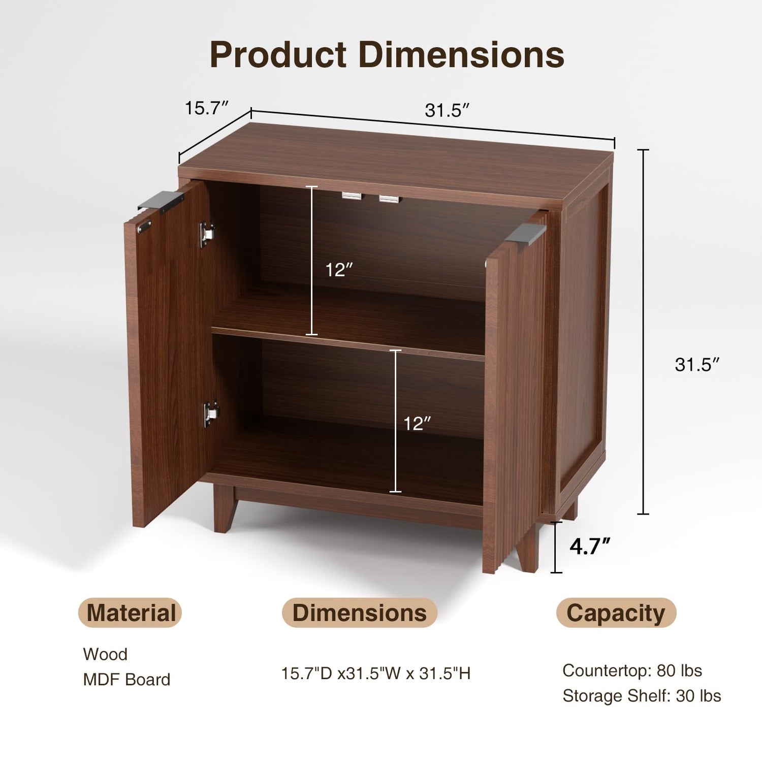 - Large Space with Adjustable Shelves: This sideboard cabinet provides ample storage space to help organize and create a tidy environment. The overall dimension: 31.5" W x 15.7" D x 31.5" H. The accent cabinet built-in divider shelves that can be adjusted in 3 heights, each with a 2" difference. Freedom to adapt to the height of the items you need to store to maximize storage efficiency.