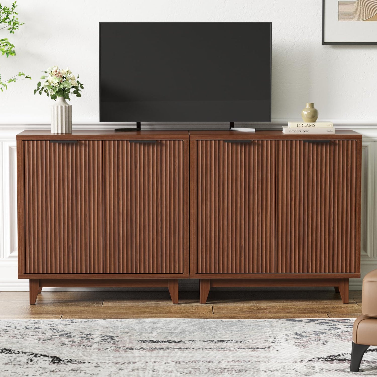 Fluted Cabinet with Storage, 2 Doors Sideboard Buffet, Mid Century Modern Accent Cabinet with Adjustable Shelves, Multifunctional Console Table with Storage for Living Room, Kitchen, Entryway