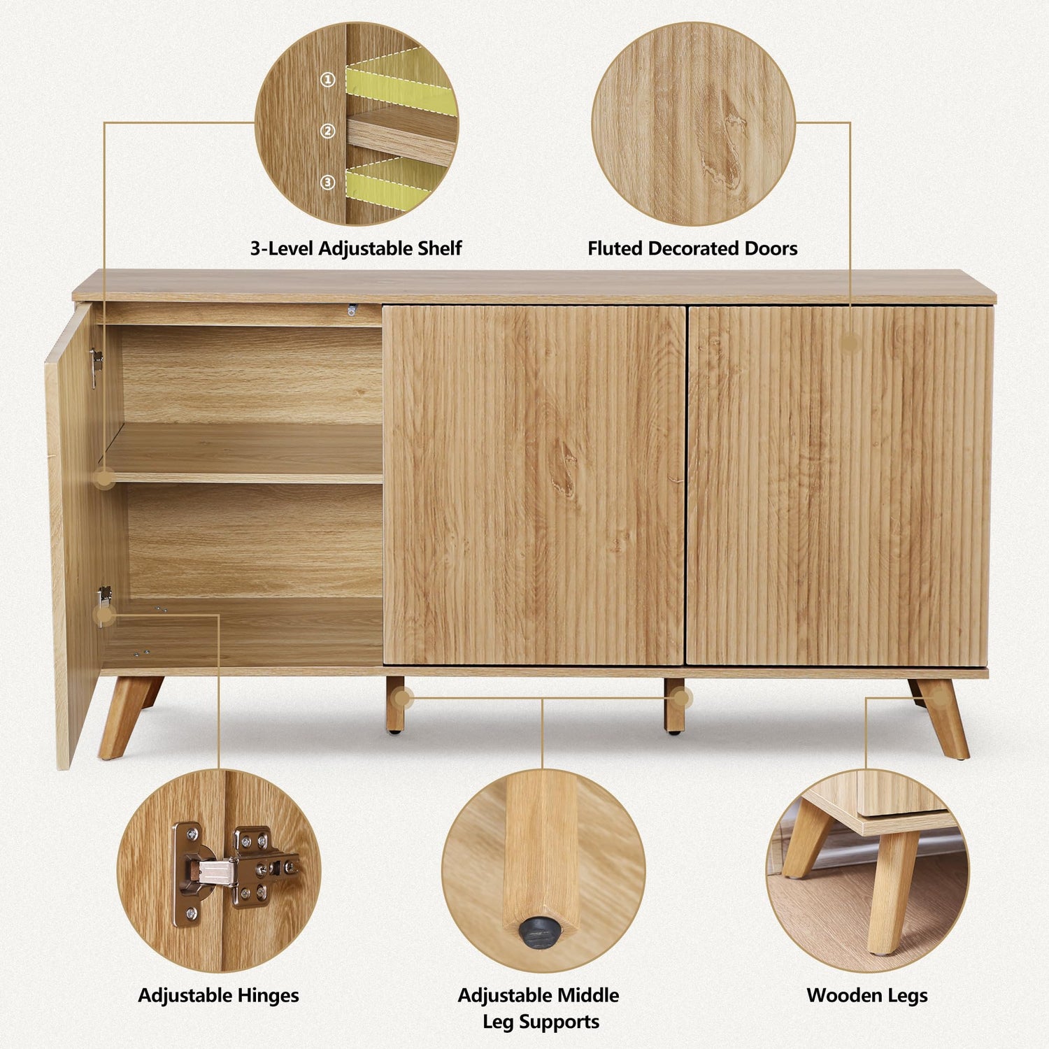 - 【Classic Waveform Fluted】Incorporate stylish fluted corrugation style into mid-century modern storage cabinet. Transform it into a accent cabinet buffets sideboards, entryway cabinet, or any other configuration to suit different occasions and rooms in your home.