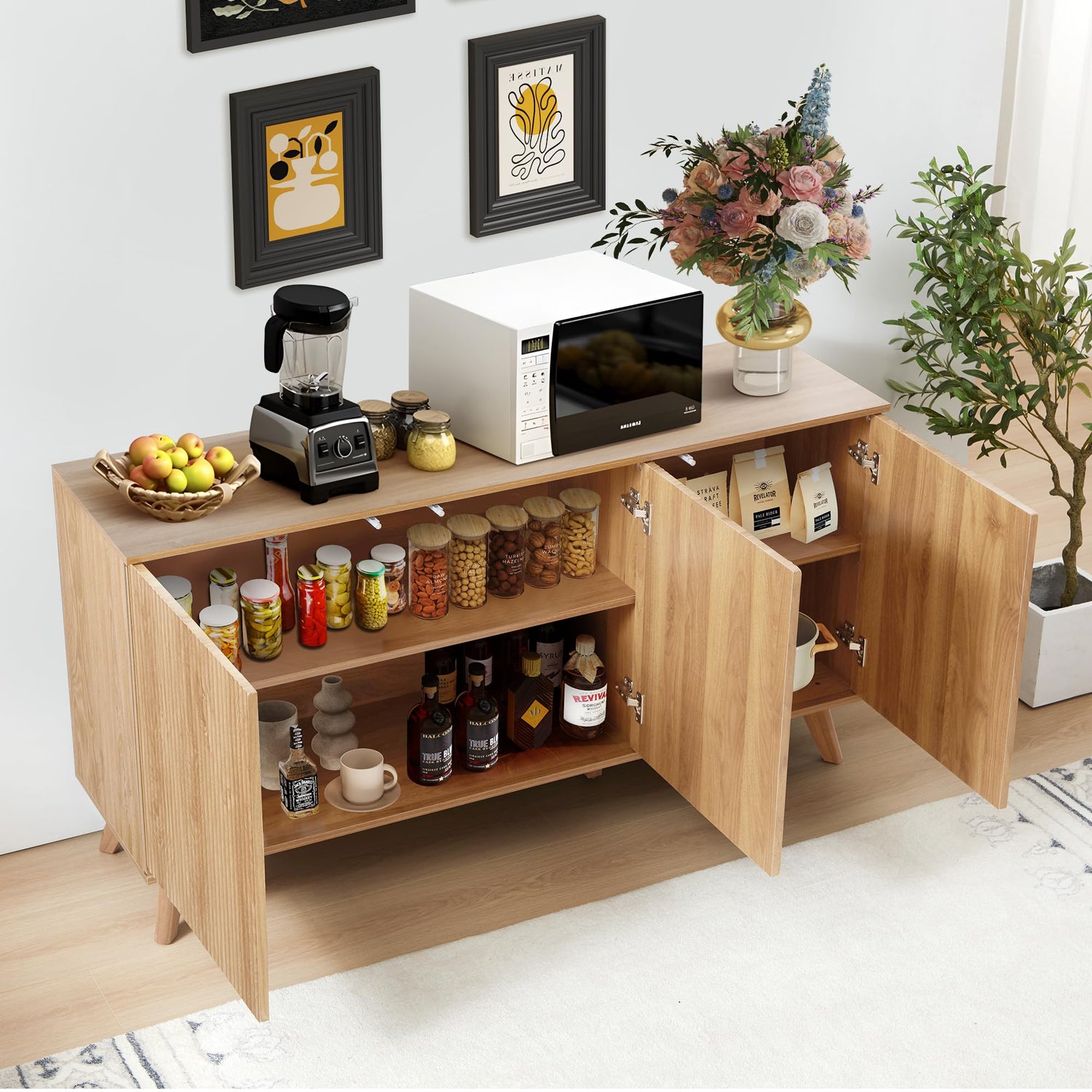 - 【Door Rebound Device】Buffet sideboard cabinet's automatic door springback and curved edges ensure easy operation and prevent collision accidents, enhancing safety and usability. Just press the door to open it easily.