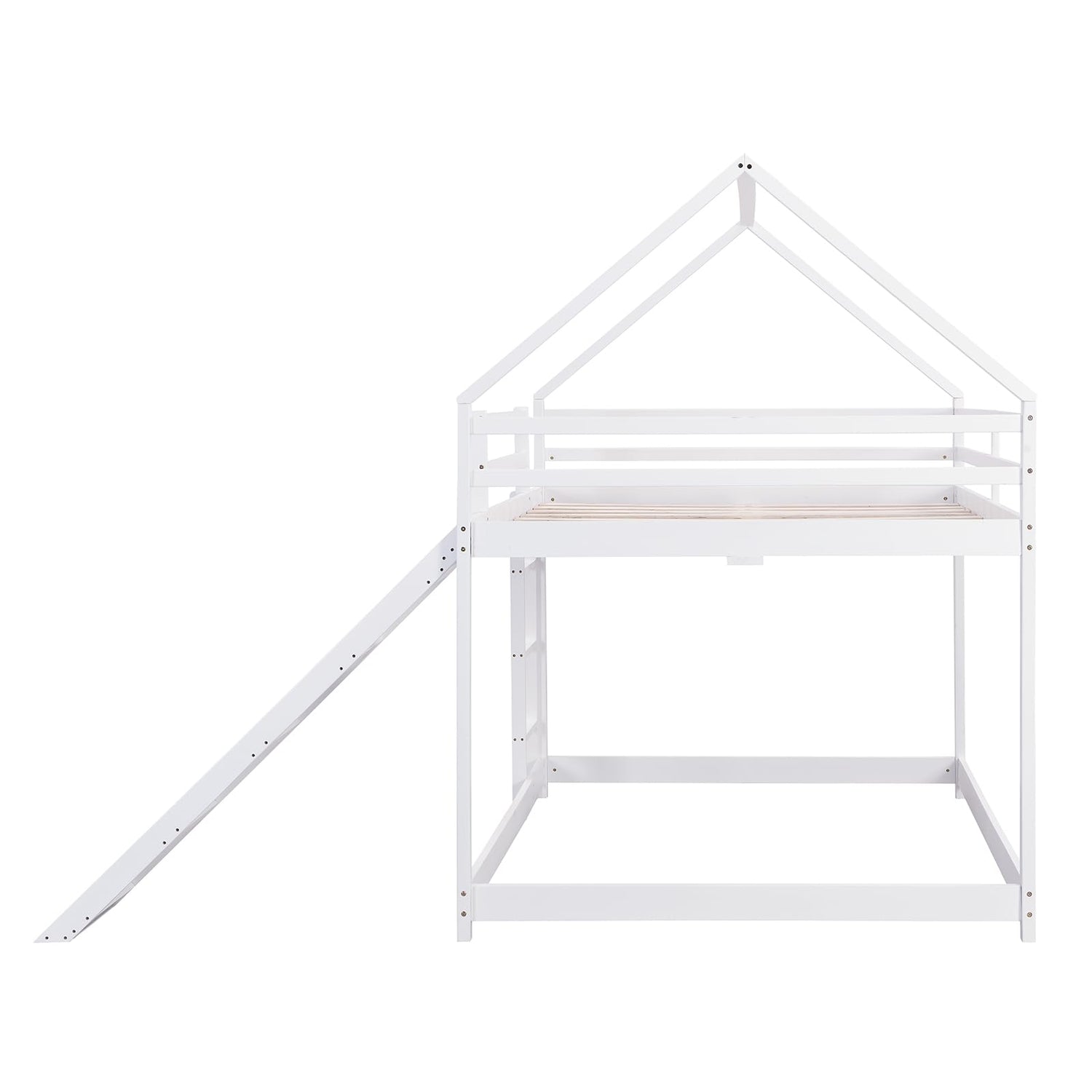 Full Size Loft Bed with Slide, Space Saving House Bunk Beds for Kids Bedroom Furniture, Pine Wood Bed Frame with 12.4" High Safety Guardrail & Ladder, No Box Spring Needed, Teens, Girls, Boys, White