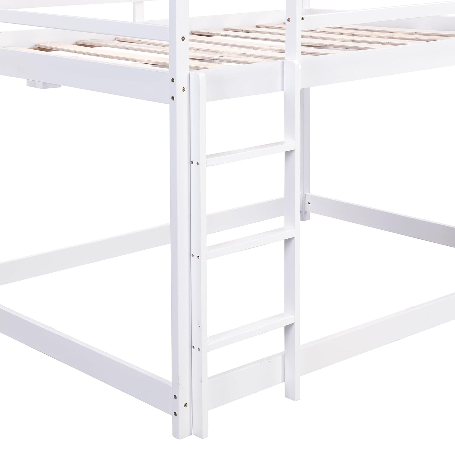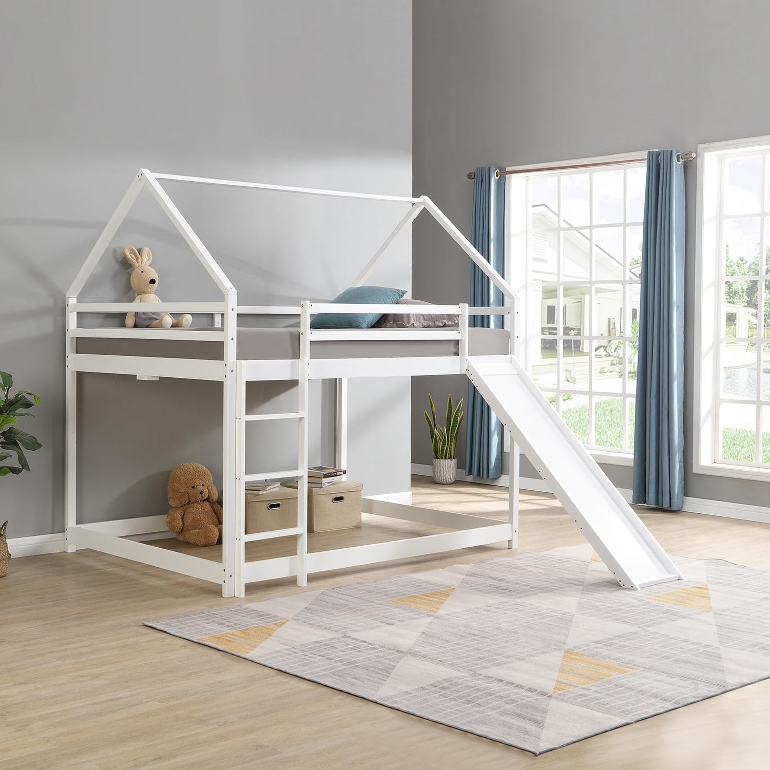 - 【Health and Comfort】No box spring required, and without needing a foundation. The simple yet elegant white kids bunk bed with slide wood frame is sturdy and comes with slats for extra support