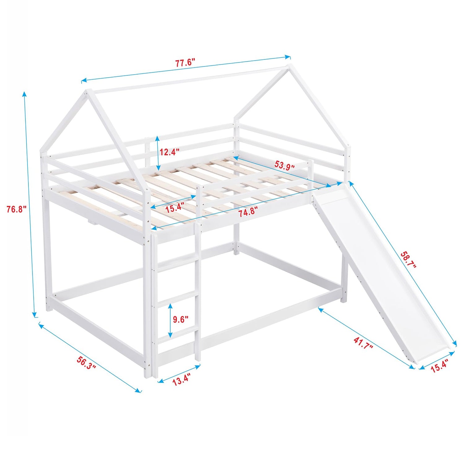- 【Total Footprint】Overall full loft bed with slide Dimension: 77.6"L x 53.9"W x 76.8"H. Mattress not included. We recommend using a standard size mattress up to 8 inches thick. With clear, step-by-step instructions and all the necessary tools included, you can have it ready for play in no time. And when it comes to cleaning, the smooth surfaces and removable parts make it simple to wipe down and keep clean.