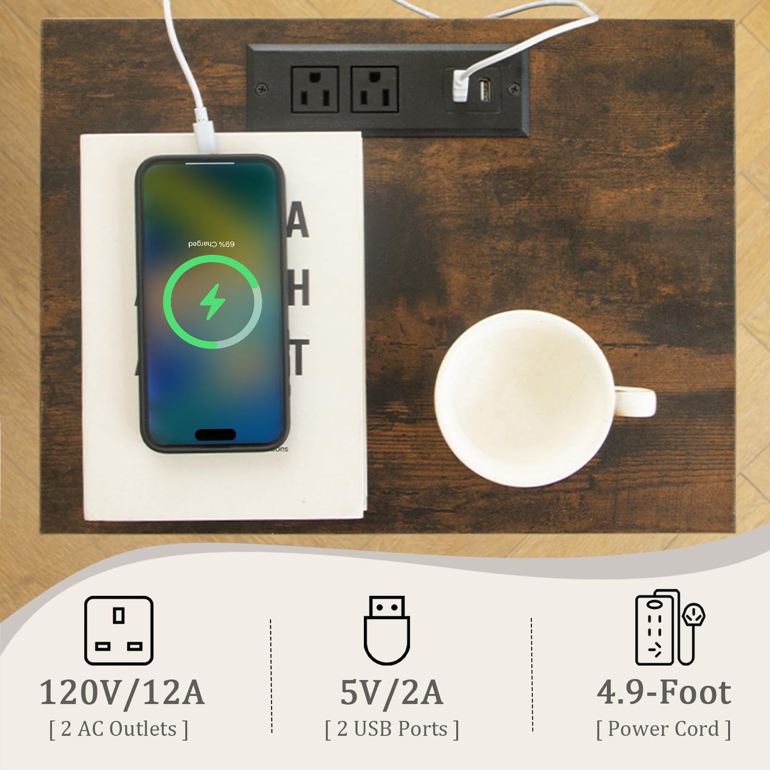- Nightstand with Charging Station: This Rustic Brwon nightstand features 2 power outlets and 2 USB ports, allowing you to conveniently charge your devices overnight without the clutter of cords, all while maintaining a sleek bedside table aesthetic
