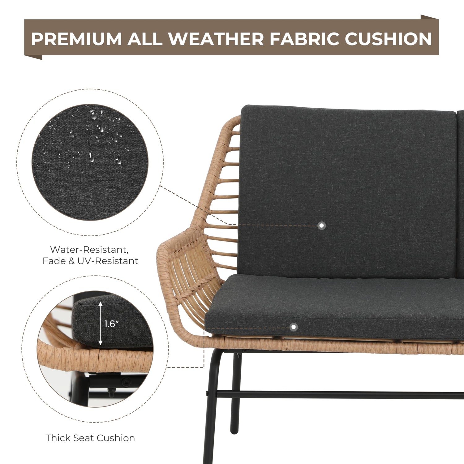 • 【EASY TO ASSEMBLE】Package comes with all furniture hardware with clear instructions, you can assemble this patio set easily and quickly.