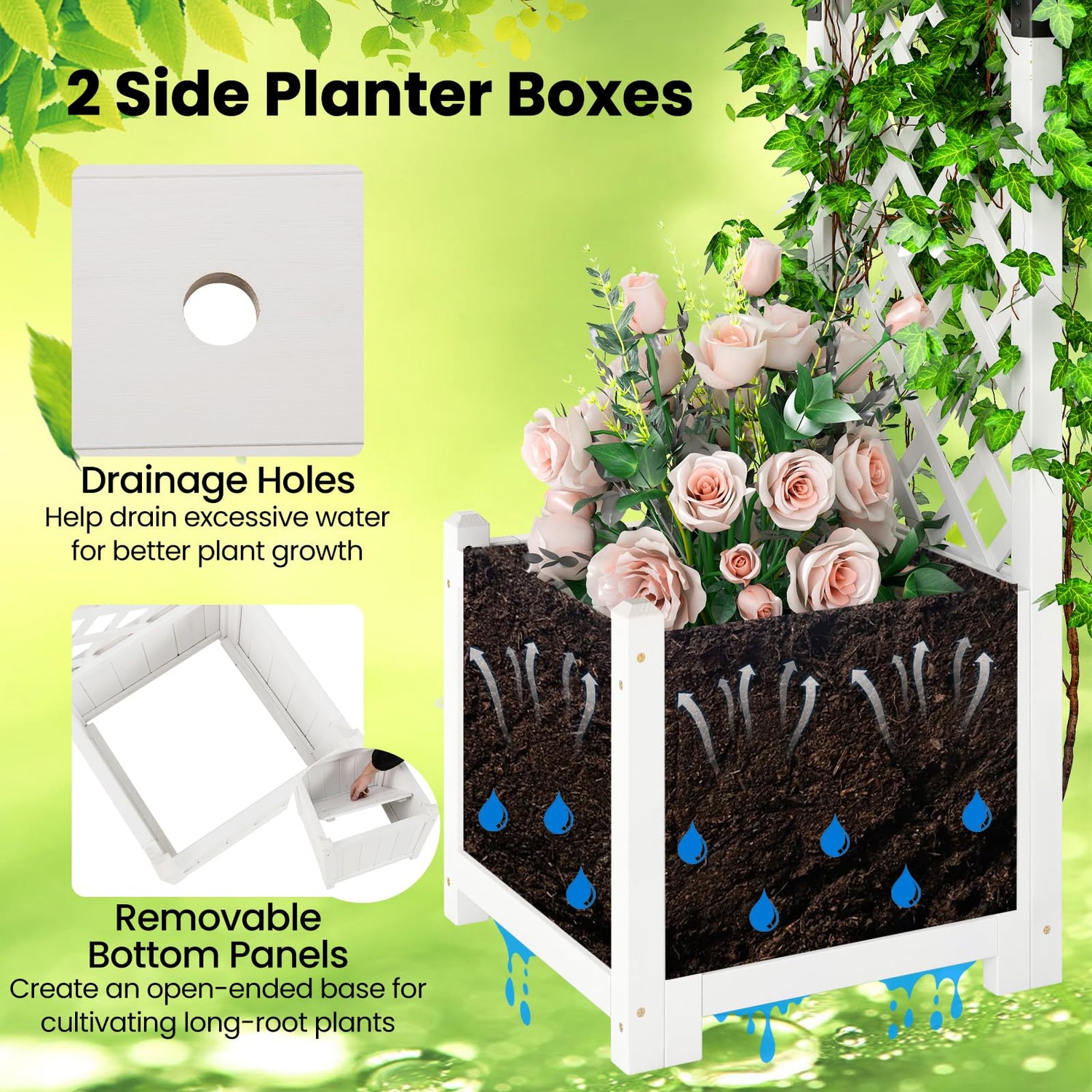 - Planter box with Drainage Holes: The wooden arbor comes with two spacious planter boxes, suitable for planting vegetables, fruits, and herbs. Additionally, there are drainage holes at the bottom for easy water drainage and soil nutrient retention, creating an ideal growing environment for plants.