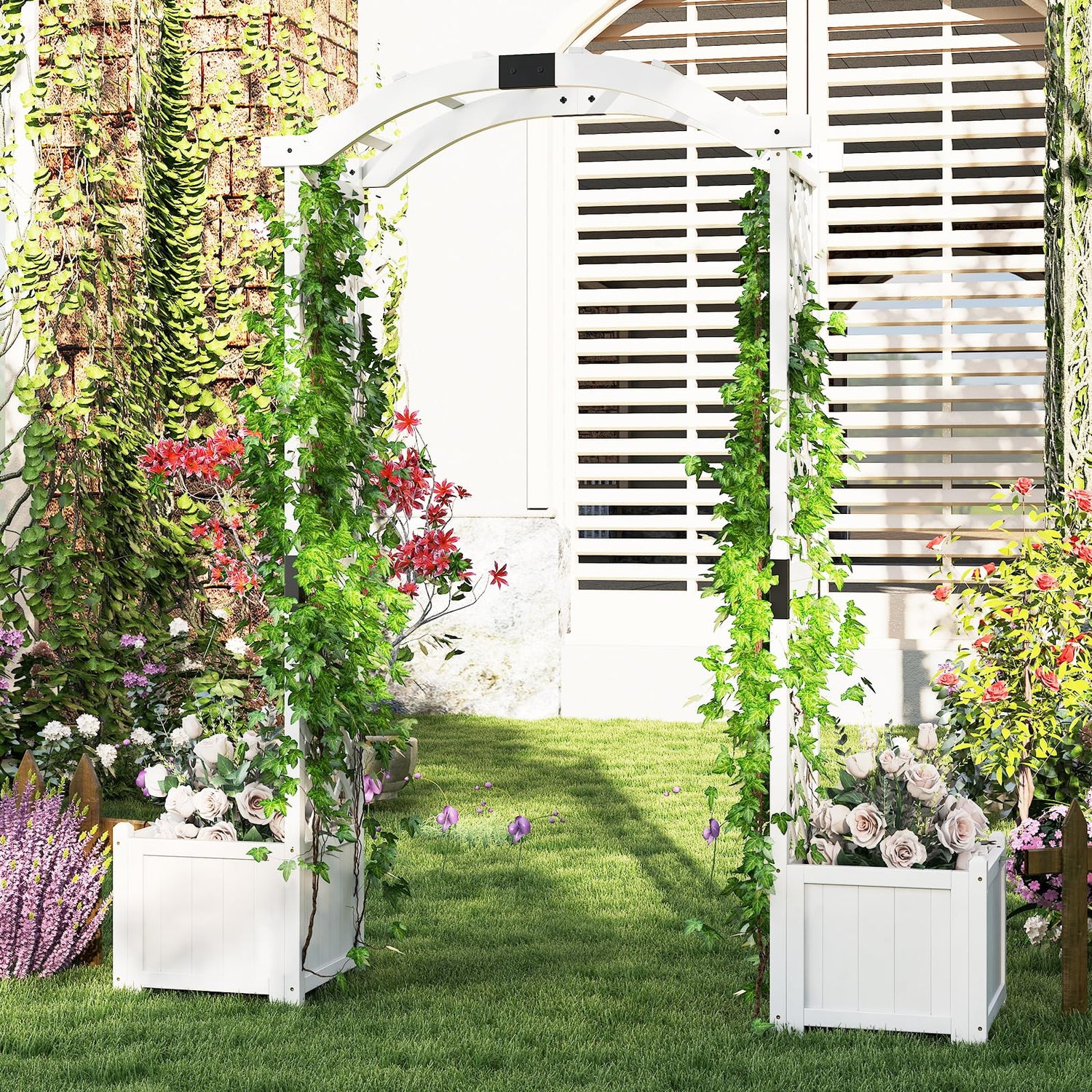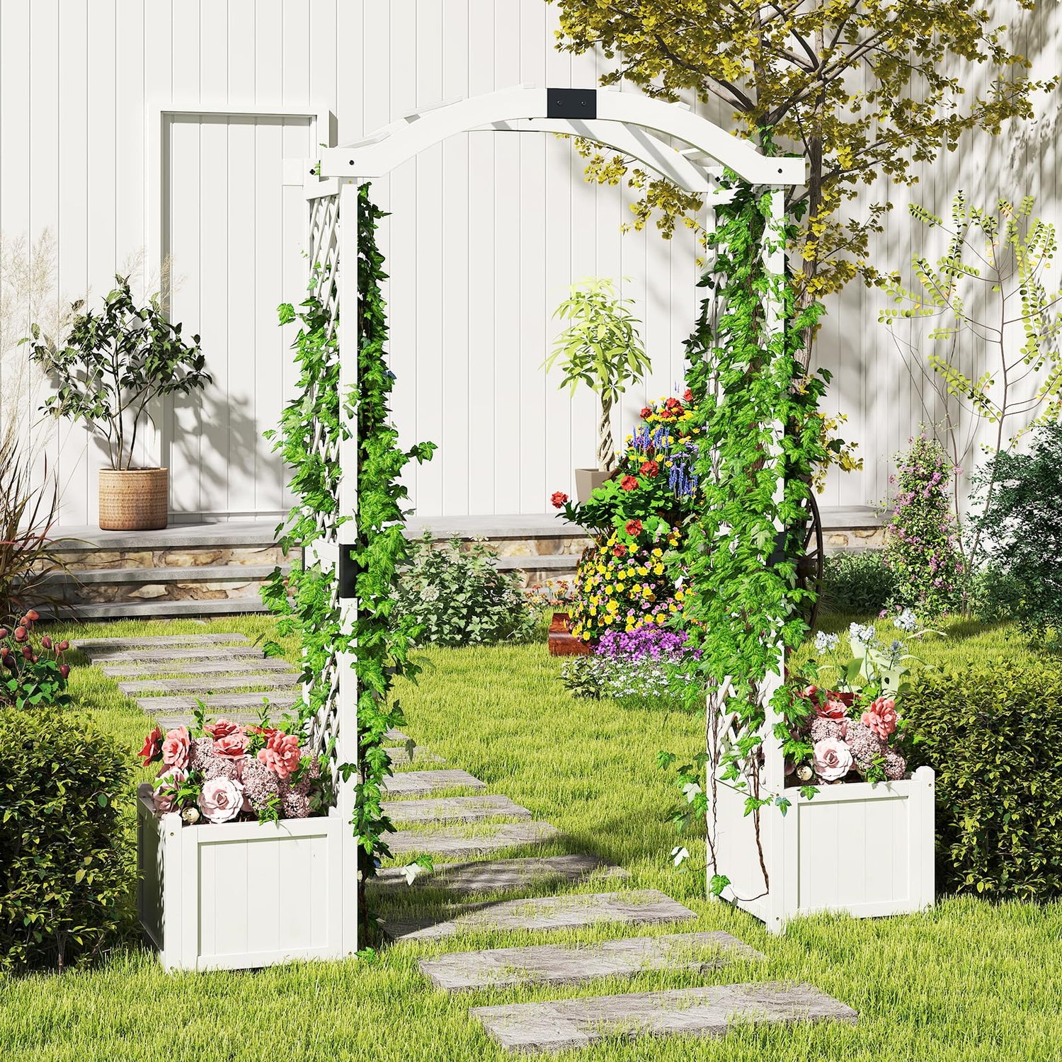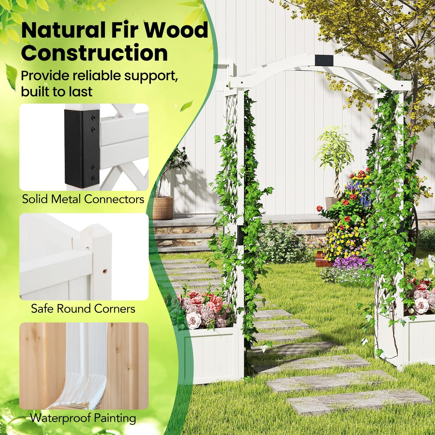Happygrill Garden Arbor with Planter Boxes, Outdoor Wedding Arch with Trellis for Climbing Plants Vine Vegetables Herbs, Wooden Arbor Archway for Ceremony, Party (White)