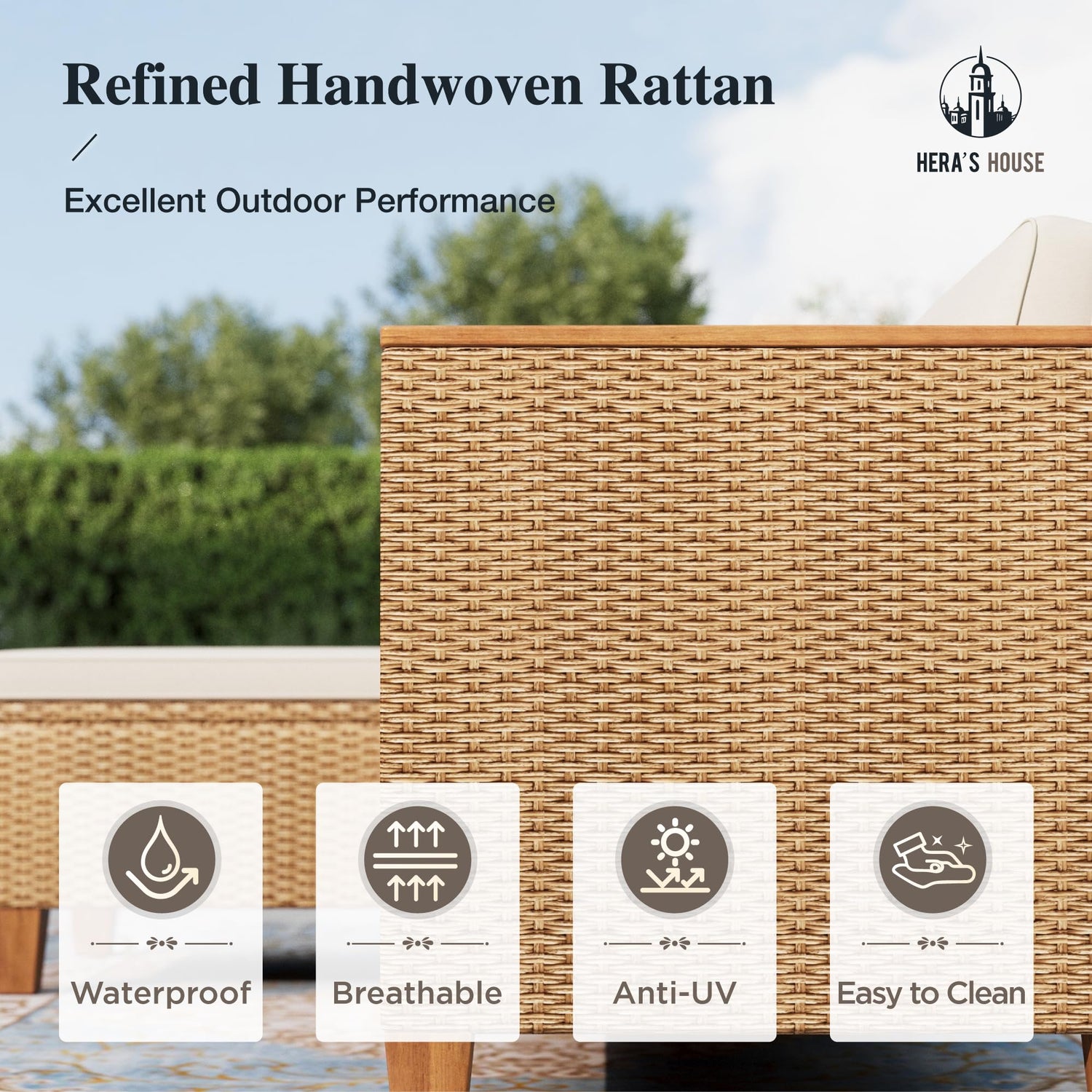 - 【Built for All Weather Use】The outdoor furniture set won't fade or dry crack with high-performance, handwoven weather-resistant WICKER KING PE rattan. The steel frame is built with E-Coating & Powder-Coating which makes the outdoor seating furniture resistant to sag, rust or aging
