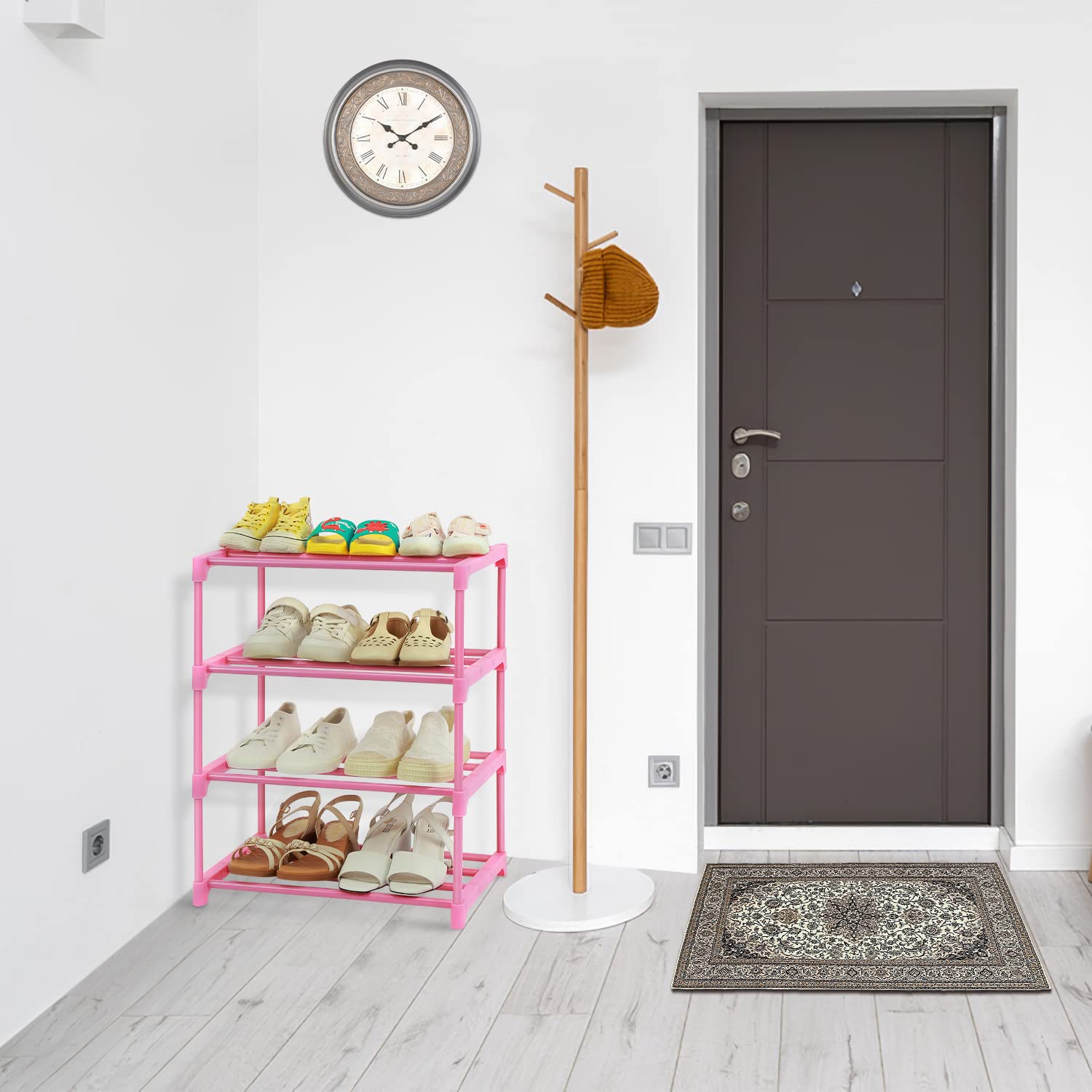HITHIM 4-Tier Free Standing Shoe Racks for 6-8 Pairs Shoe Storage,Kids Shoe Racks for Small Place,Lightweight Stackable Shoe Shelf Organizer for Entryway, Doorway and Closet,Pink