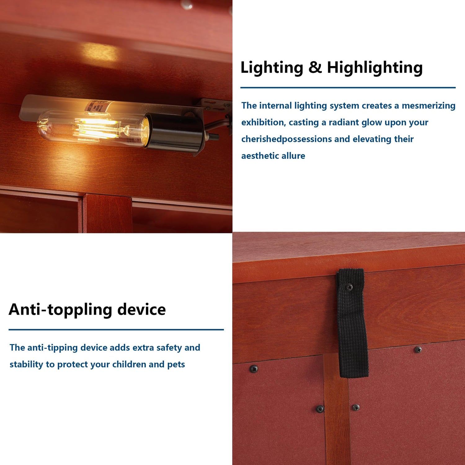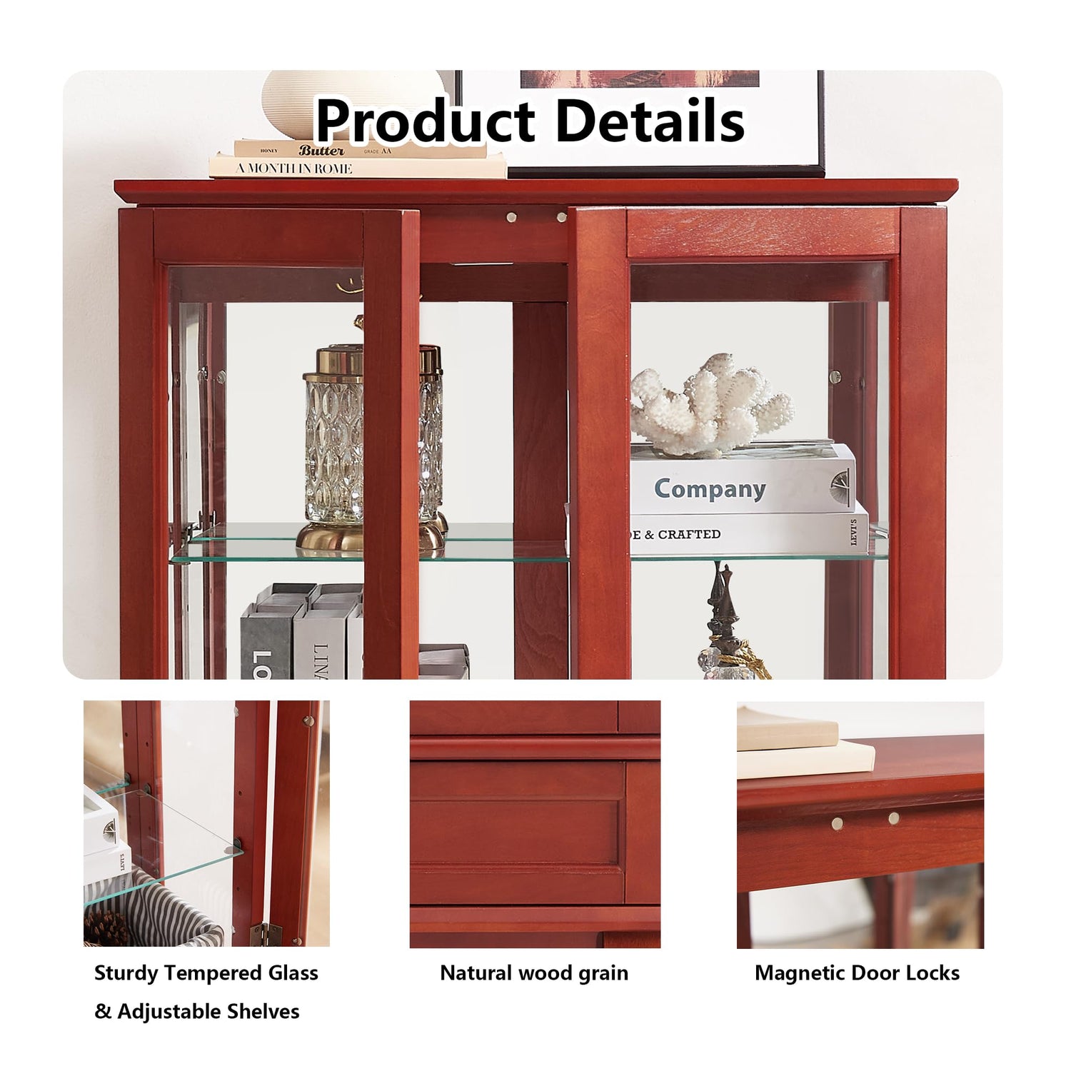 - 【Secure Magnetic Door Locks & Stability】 Designed for safety, the magnetic door locks keep your valuables securely in place, while the anti-toppling device ensures stability. The tempered glass resists wear, making it a reliable glass curio cabinet display case.