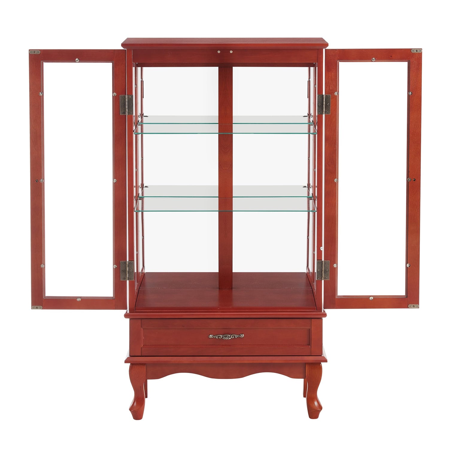 - 【Elegant Cherry Finish with Built-in Lighting】 This HIUU cherry curio cabinet features soft built-in lights to beautifully showcase your collectibles, china, or decor. The sturdy tempered glass doors provide crystal-clear visibility while ensuring durability. A perfect display cabinet with glass doors for living rooms or dining areas.