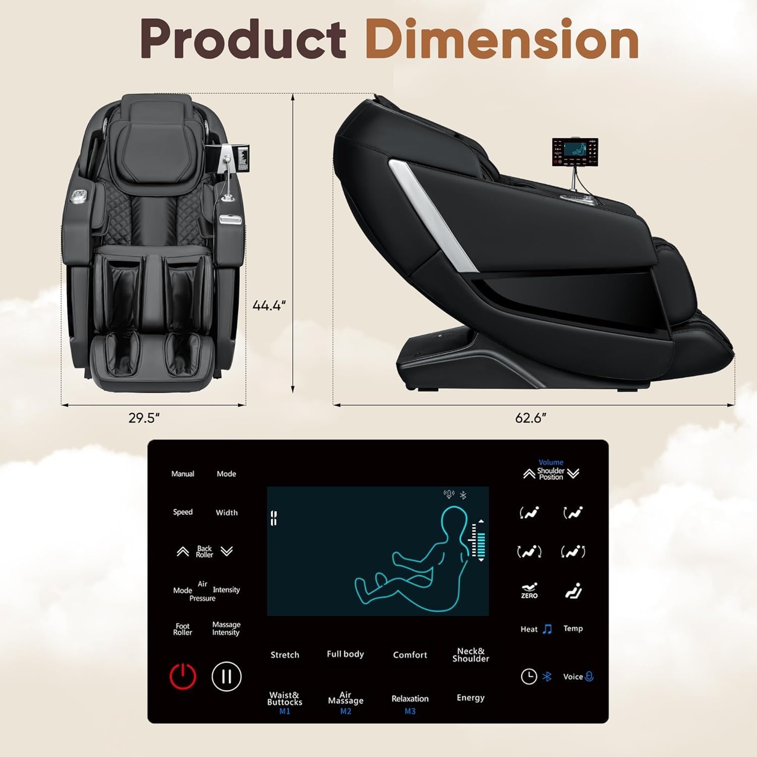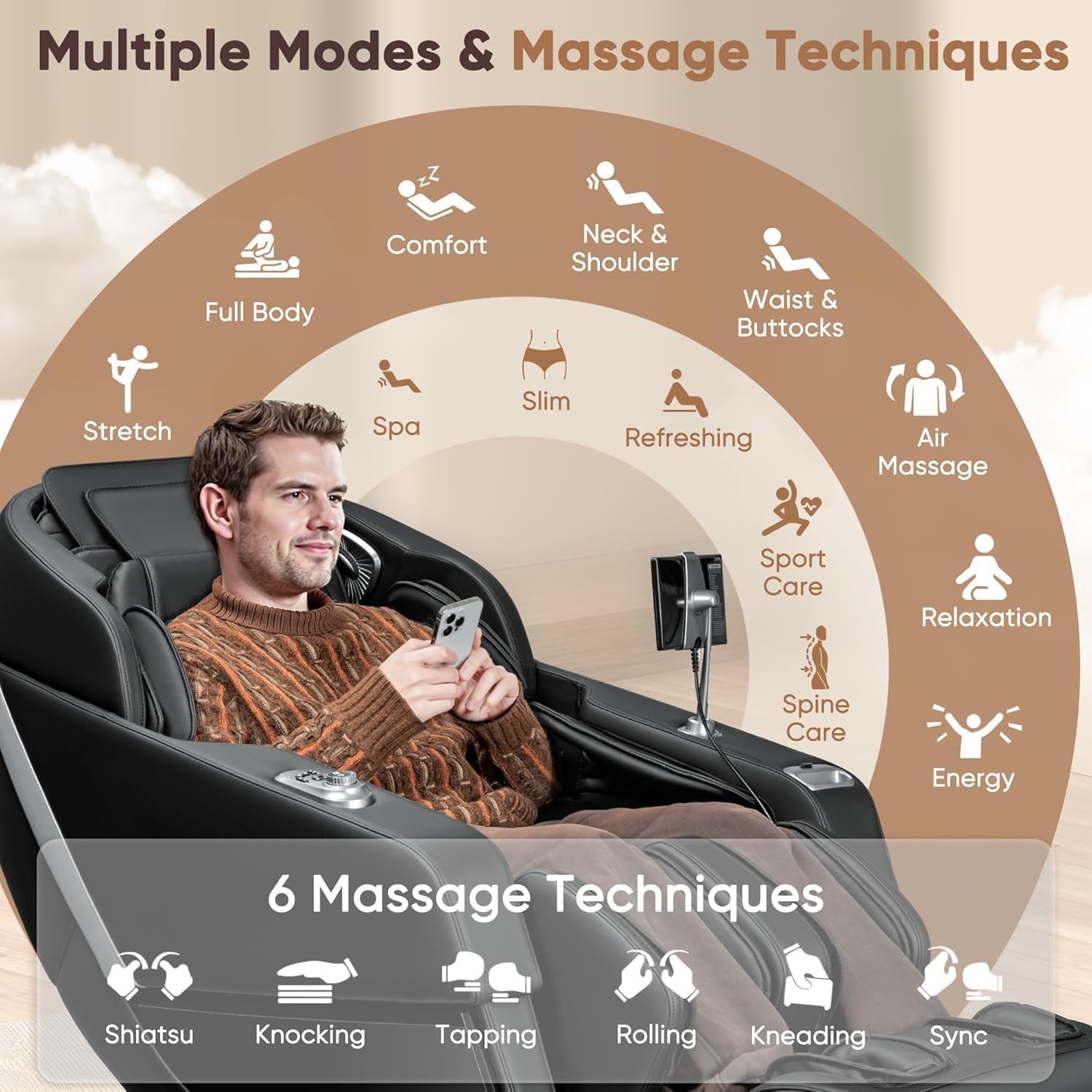 - 【Zero Gravity & Full Body Relief】– Experience ultimate relaxation with our SL-Track massage system that follows your spine’s natural curve, covering neck to glutes for deep tissue relief. Zero Gravity mode reduces spinal pressure and improves circulation.