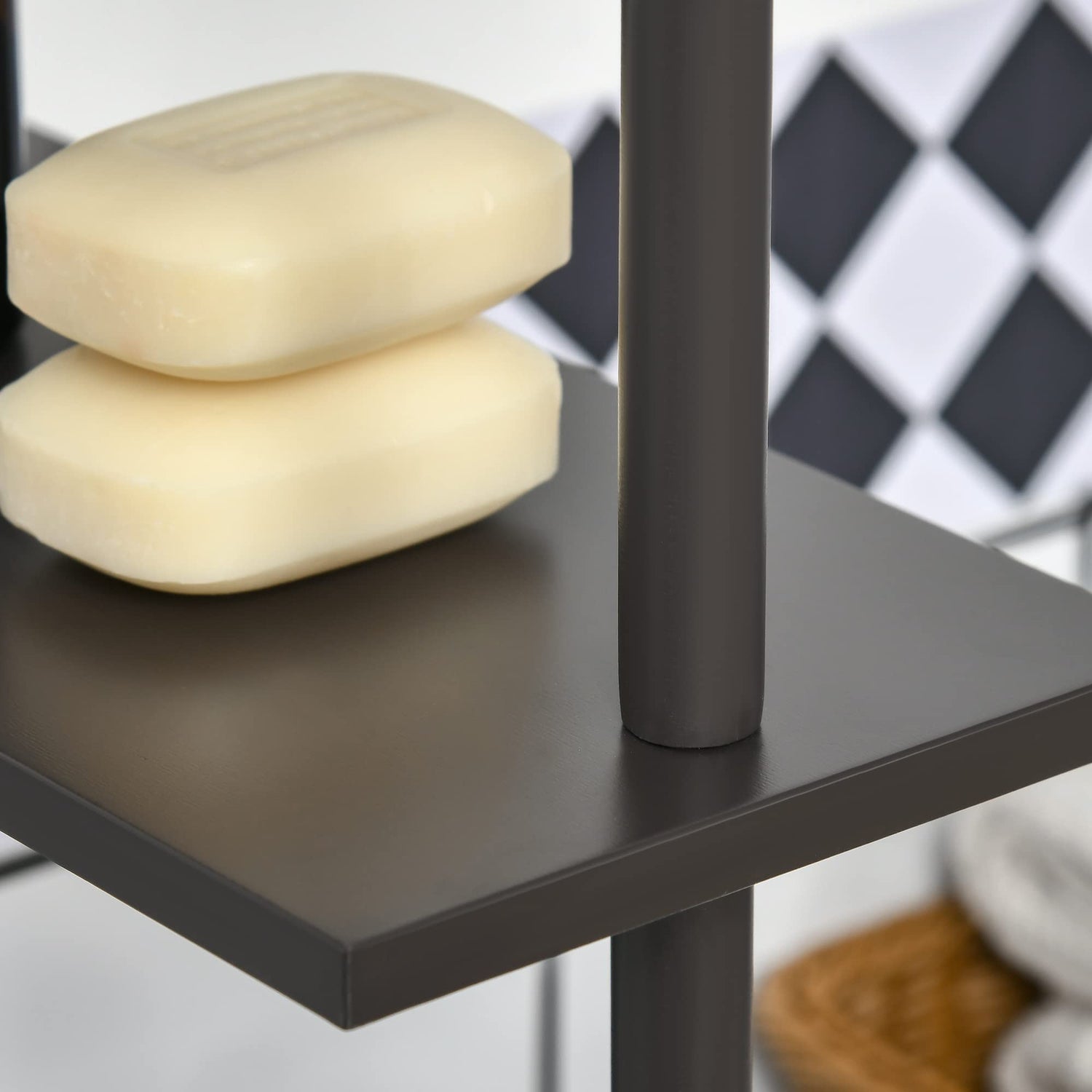 - Solid Structure: Solid wooden rods support a double platform shelf system of bathroom storage organizer, allowing for optimized horizontal placement of knick-knacks and toiletries.