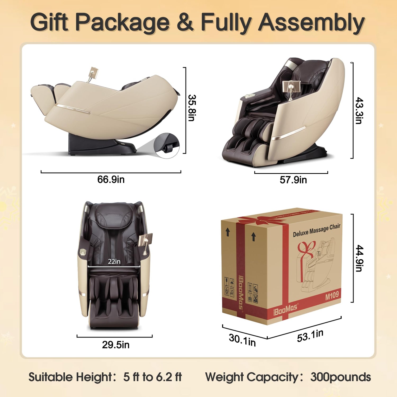 iBooMas Massage Chair, 2025 SL-Track Zero Gravity Shiatu Massage Chairs Full Body Recliner, APP, Touch Screen, Foot Rollers, Airbags, Bluetooth, Body Scan, Thai Stretch(Brown)