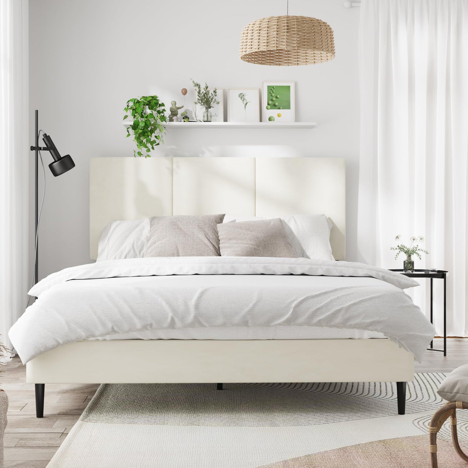 - Cost-Effective: Eliminate bulky spring boxes—the platform bed frame directly supports your mattress, saving you money. A 6.5-inch clearance from the ground allows vacuum cleaners to pass through easily, making it simple to clean the bed frame.