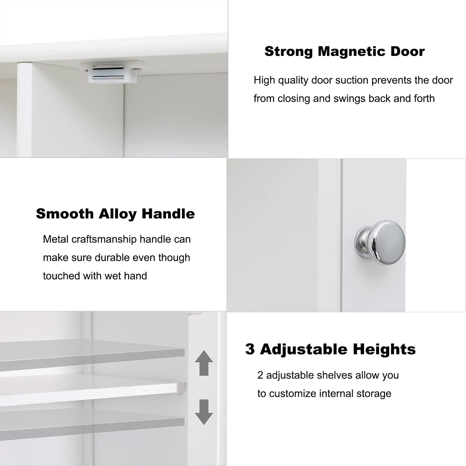 - ⭐Combination of Cabinet & Mirror: The bathroom wall cabinet perfectly combines the function of storage and mirror, you can easily shave or apply makeup in the morning with the mirror, and meanwhile to store a lot of medicine, bandage, toiletries and decorations behind or beside the mirror