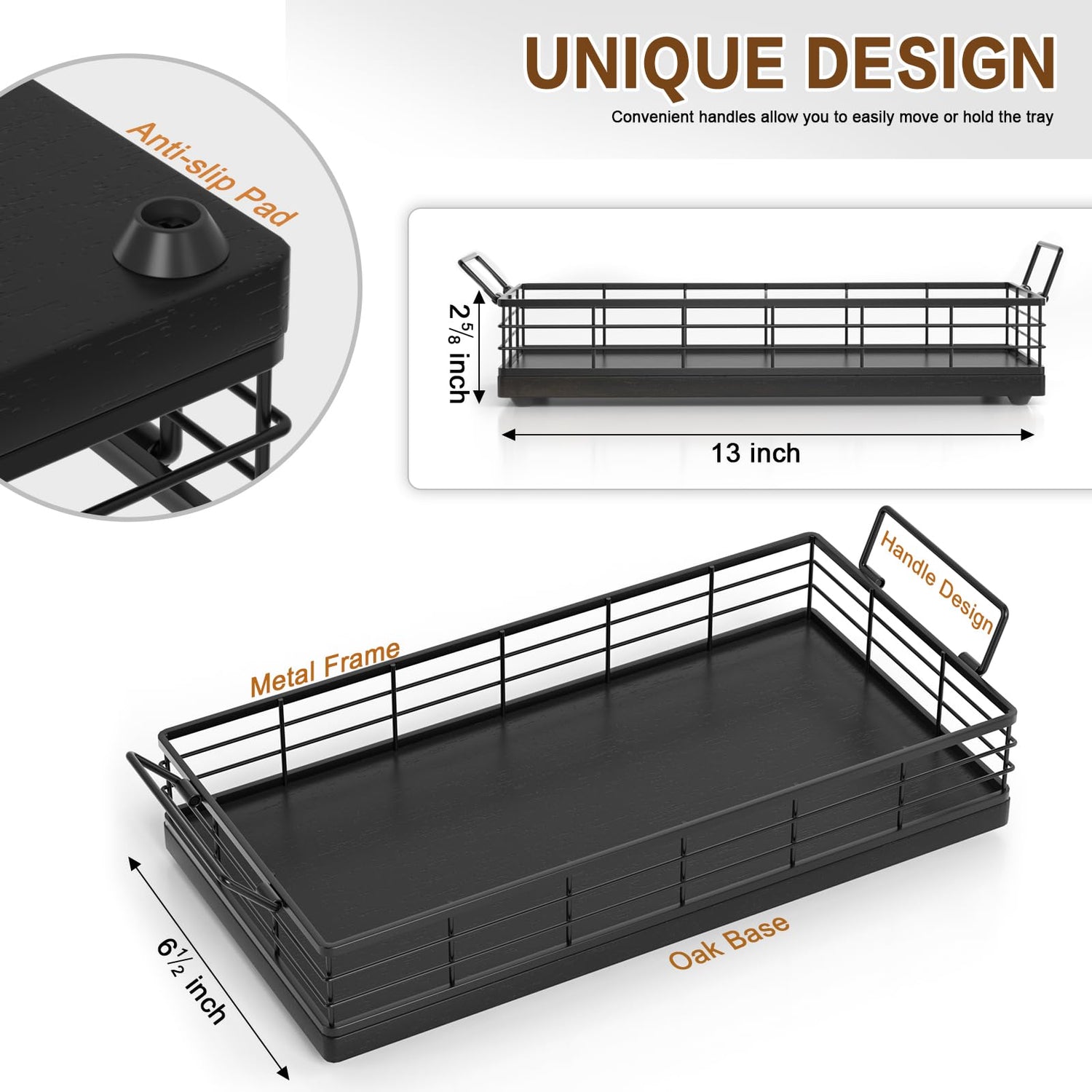 JNFUZ Toilet Paper Basket, 13 Inch Oak and Iron Tank Tray Top of Toilet Storage Toiletries Organizer for Bathroom, Living Room and Kitchen (Black)