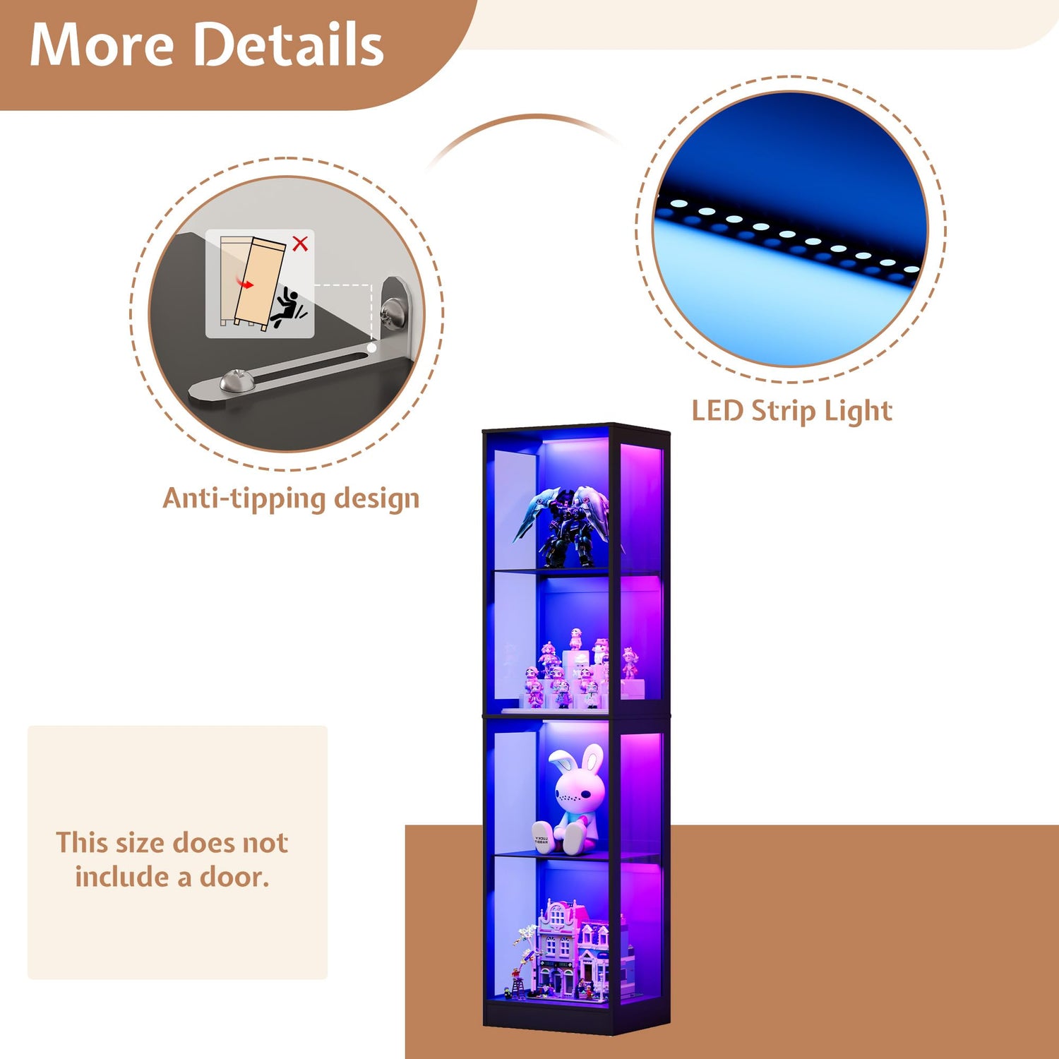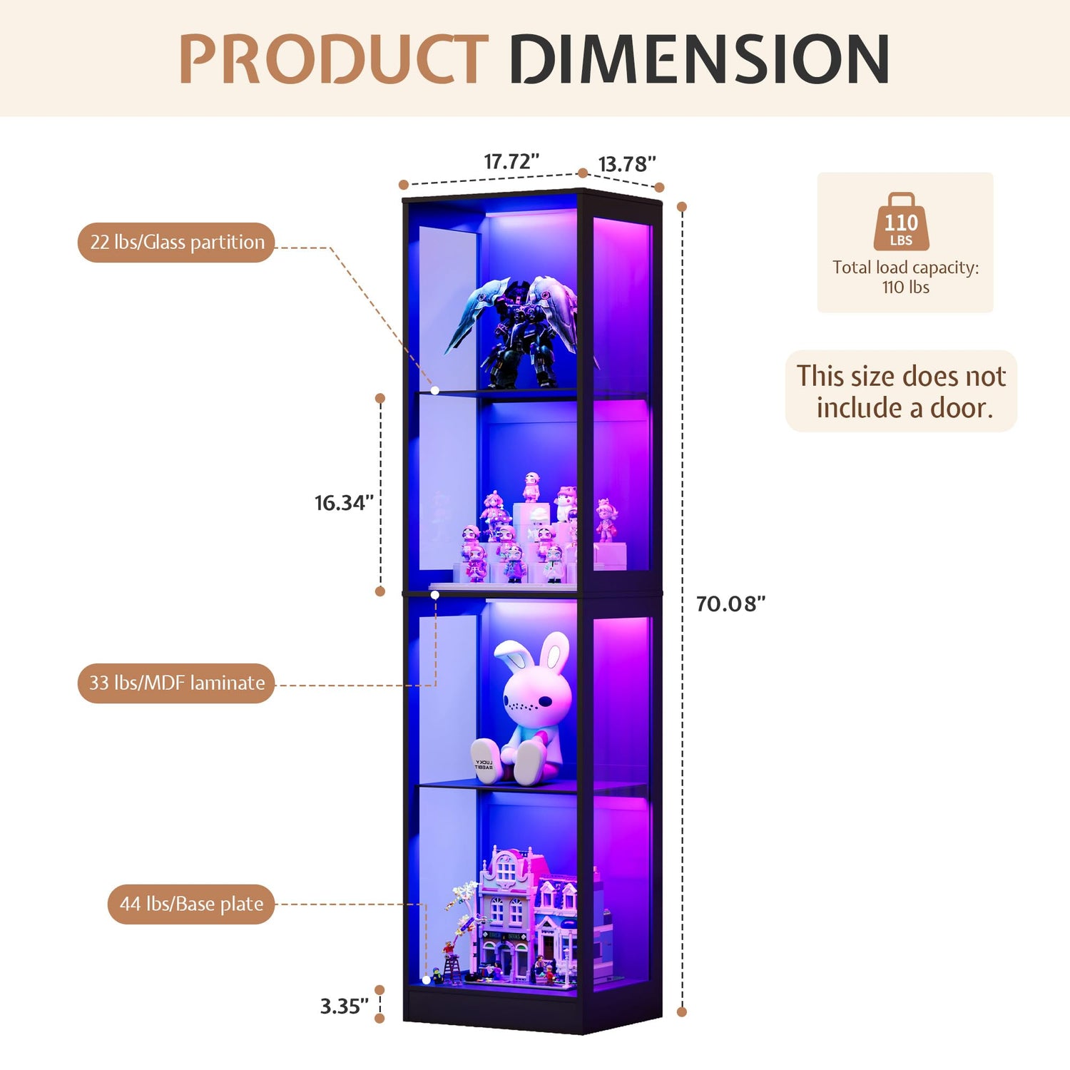 - Smart RGB Lighting: Glass display cabinet features built-in RGB lights with remote and app control. Customize colors and effects to enhance your display and create a stunning atmosphere