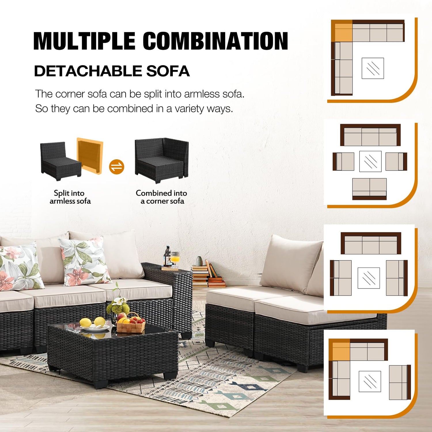 - MODULAR FREE-COBINATION:Clear instruction and all necessary hardware are included, which make assembly easier. Modular design matches freely with any placements you like. This patio furniture set is suitable for various scenes; You can enjoy leisure time with your family and friends in your garden, patio or backyard