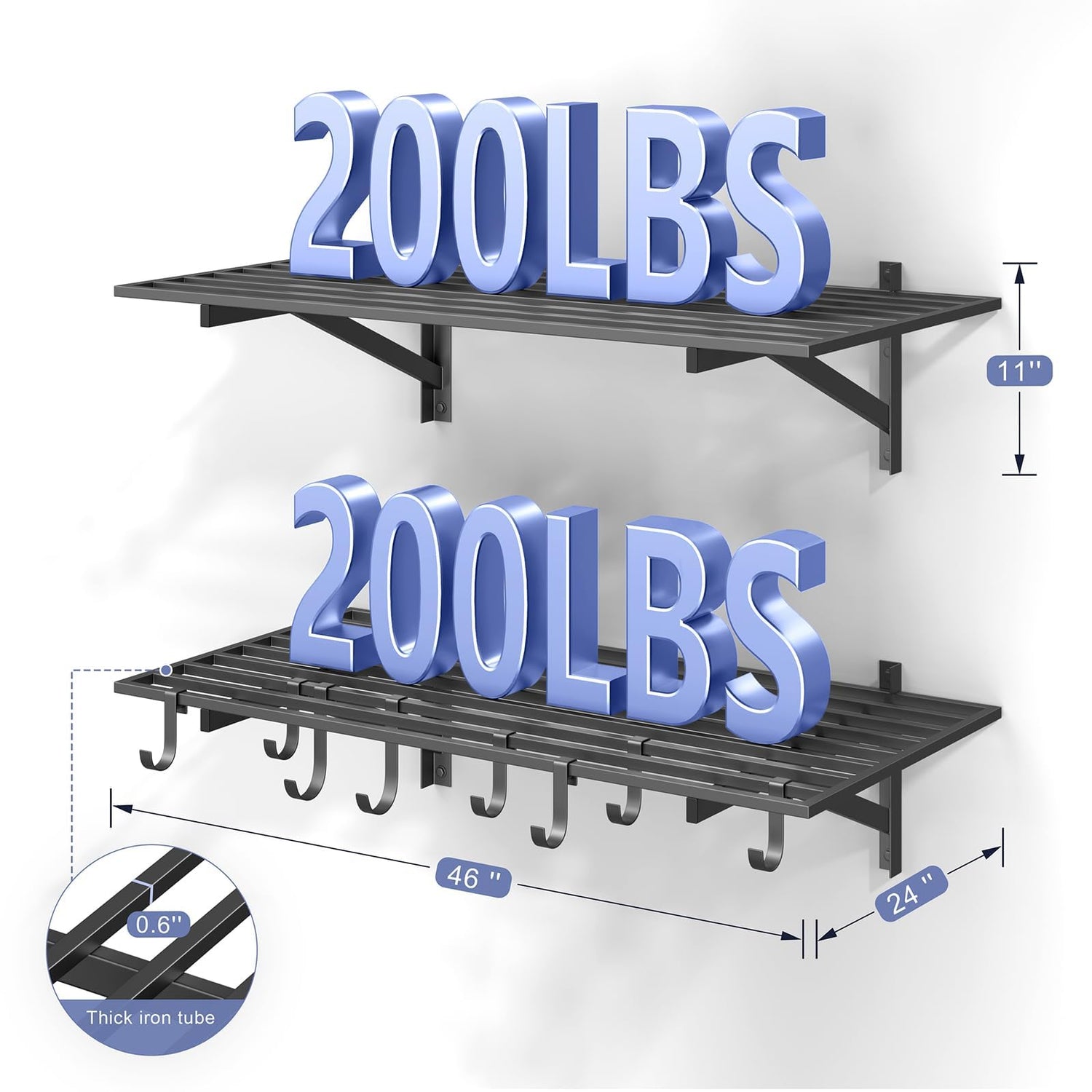 Jusgym 2-Pack 2x4ft Garage Shelving Wall Mounted, 2' x 4' Heavy Duty Garage Storage Shelves with Hooks, 400LB Capacity