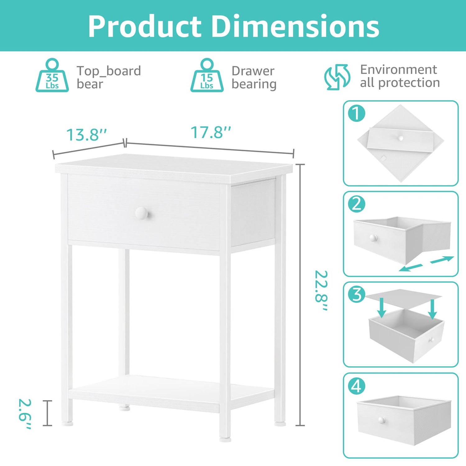 - Fabric Drawer with Wood Front: This White night stand has FABRIC drawers with wood front,elegant look and easy to clean,removable Wooden handle.Storage open shelf,offer stable support and ensure years of use,convenient to clean