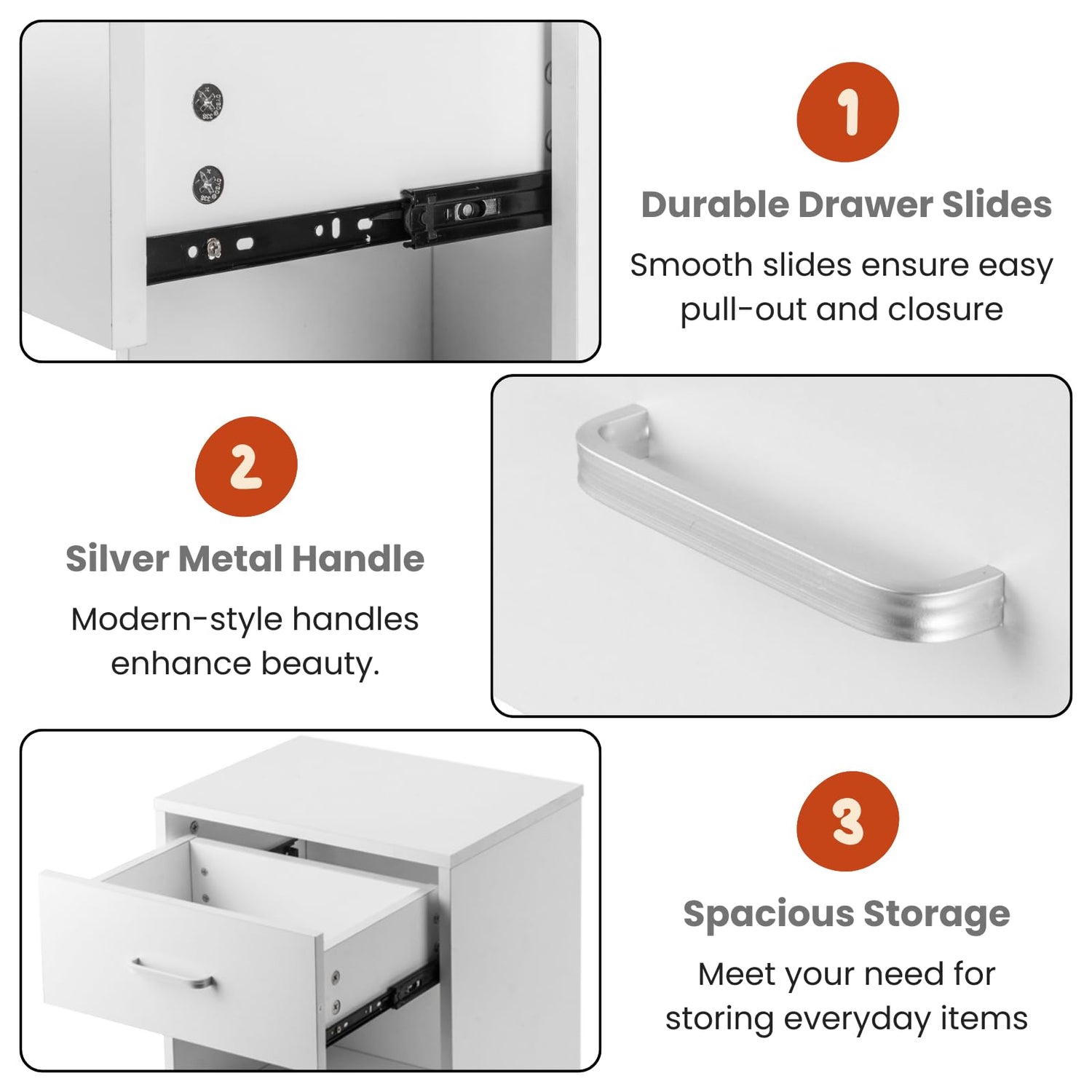 - Sturdy & Durable - Crafted with 15 mm P2 particle board, the nightstand is built to last. Engineered wood enhances durability, the ball bearing slide with a soft close mechanism ensures long-term use, sleek finish contributes to easy maintenance.