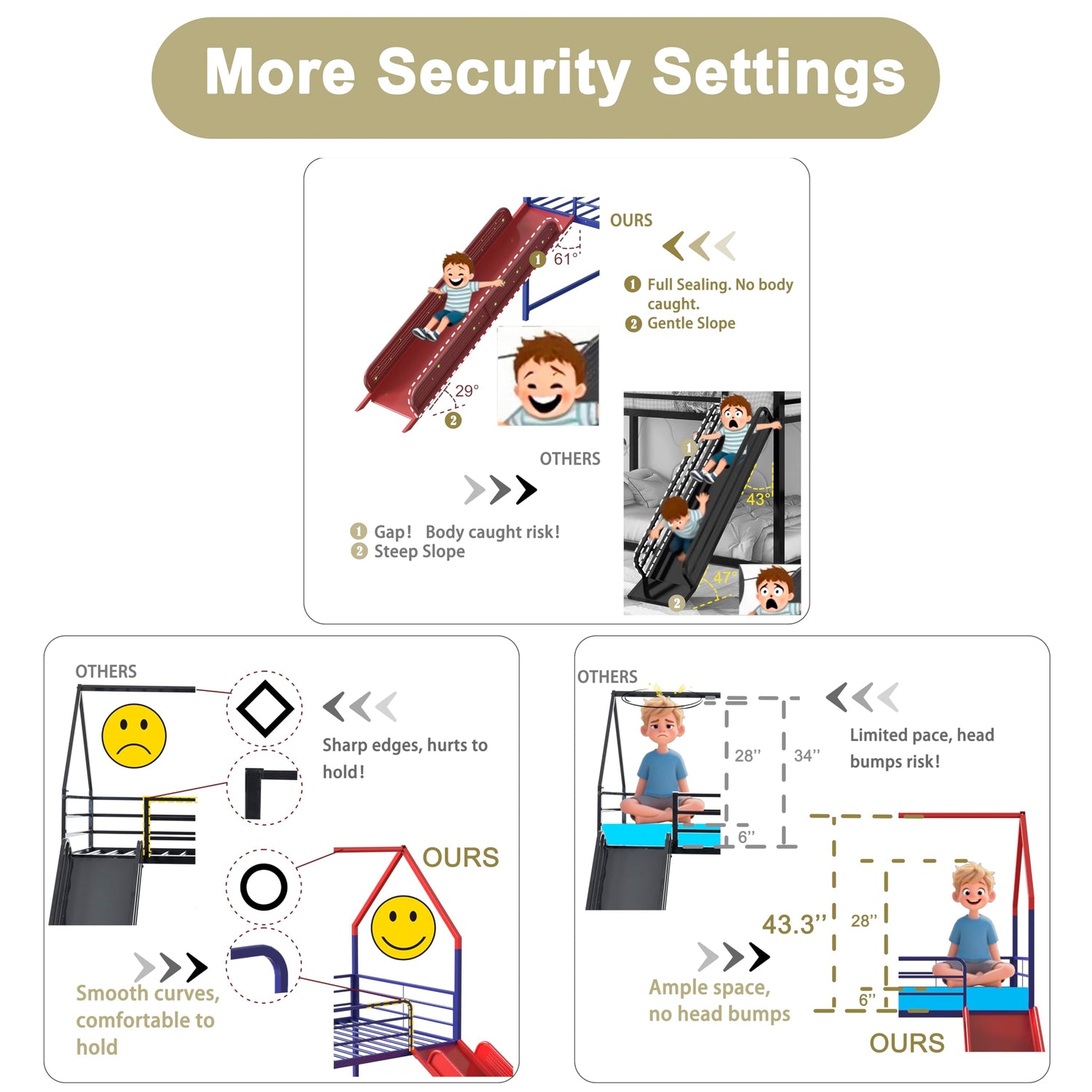- [Loft Bed with Guardrails] The twin loft bed includes full-length guardrails, smooth edges, and a fully sealed slide for safe climbing and sliding, offering kids a cozy and secure sleeping space.