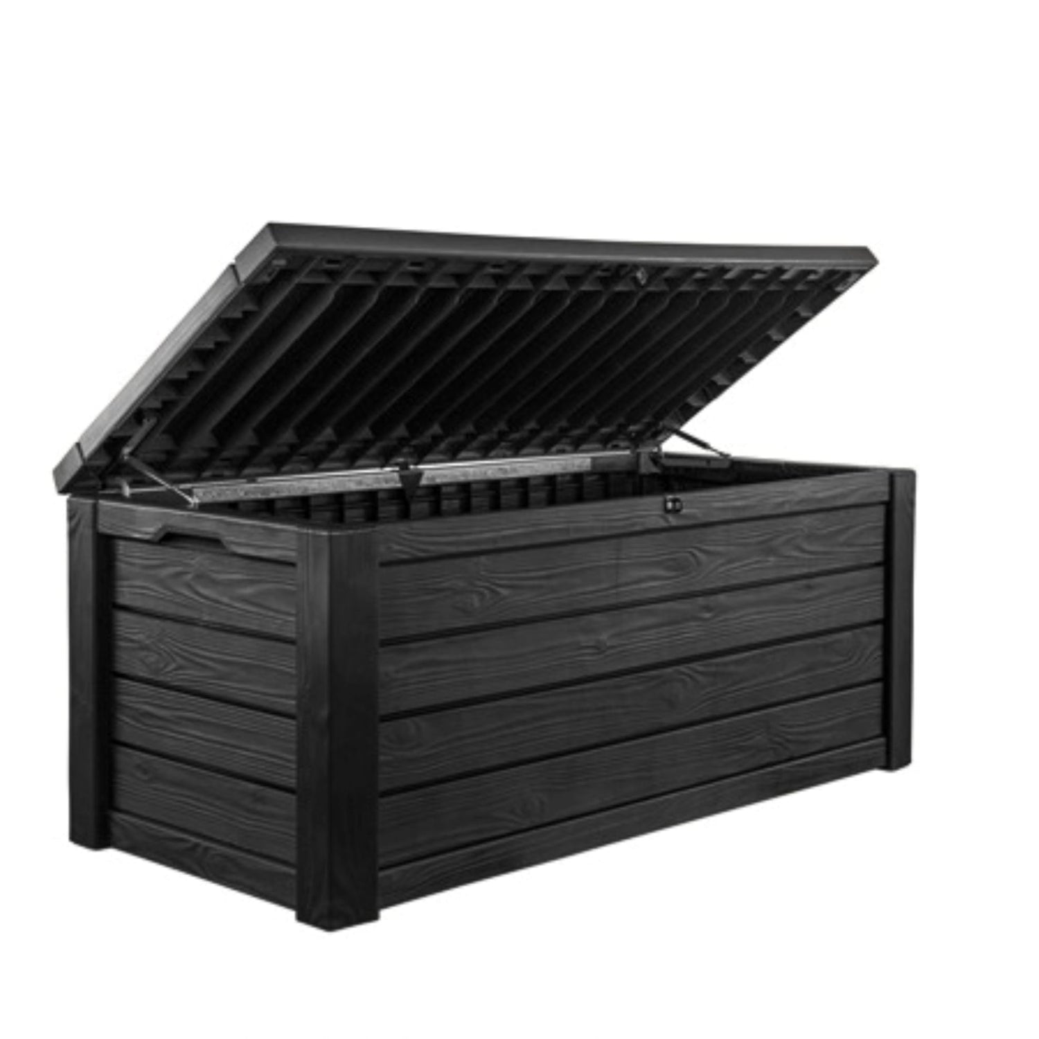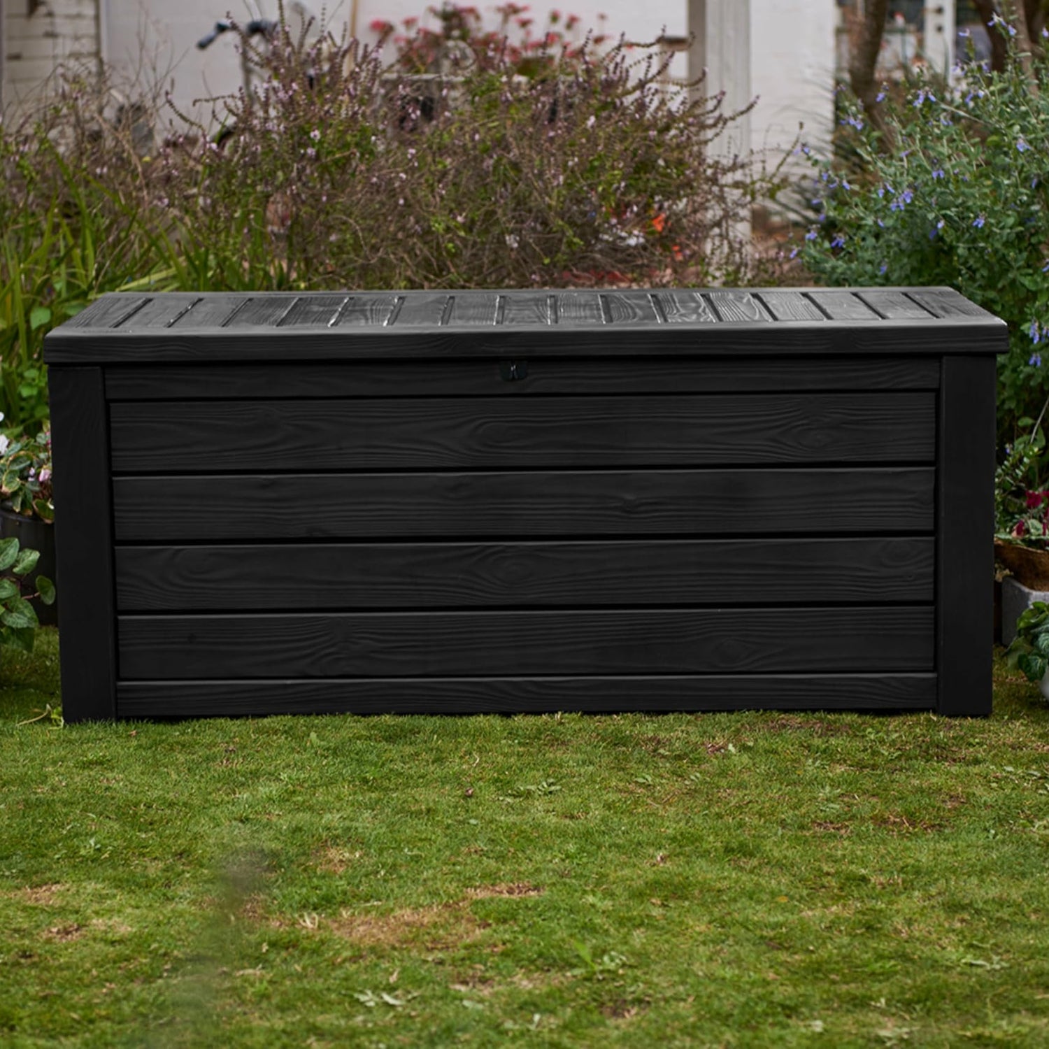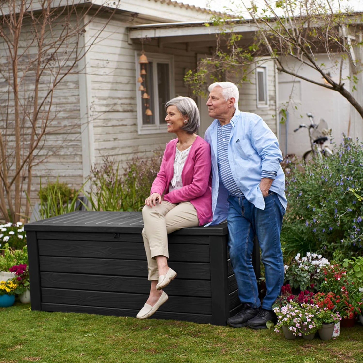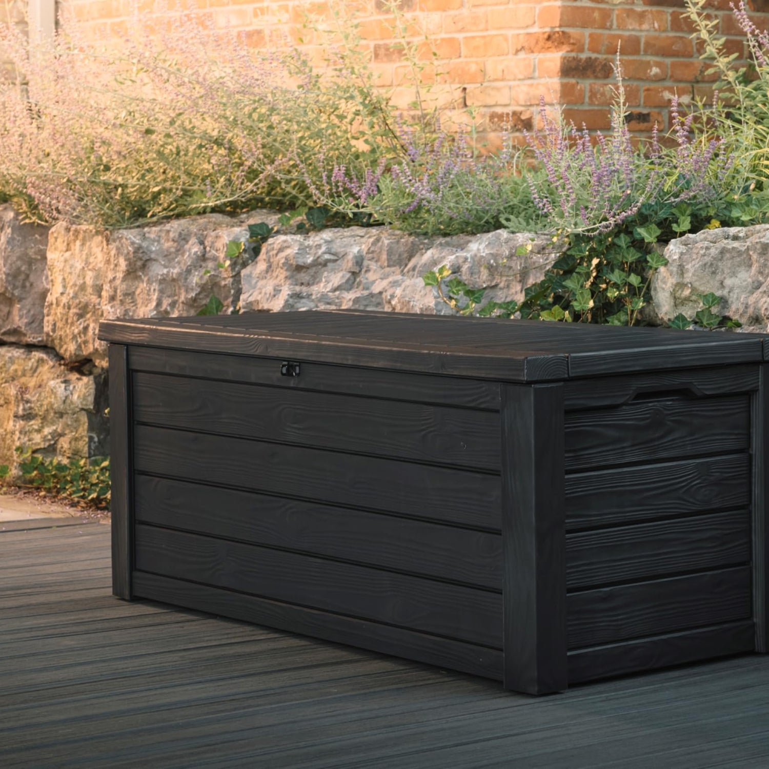 Keter Westwood 150 Gallon Resin Large Outdoor Storage Box for Patio Furniture, Outdoor Cushions, Garden Tools and Pool Floats, Dark Grey