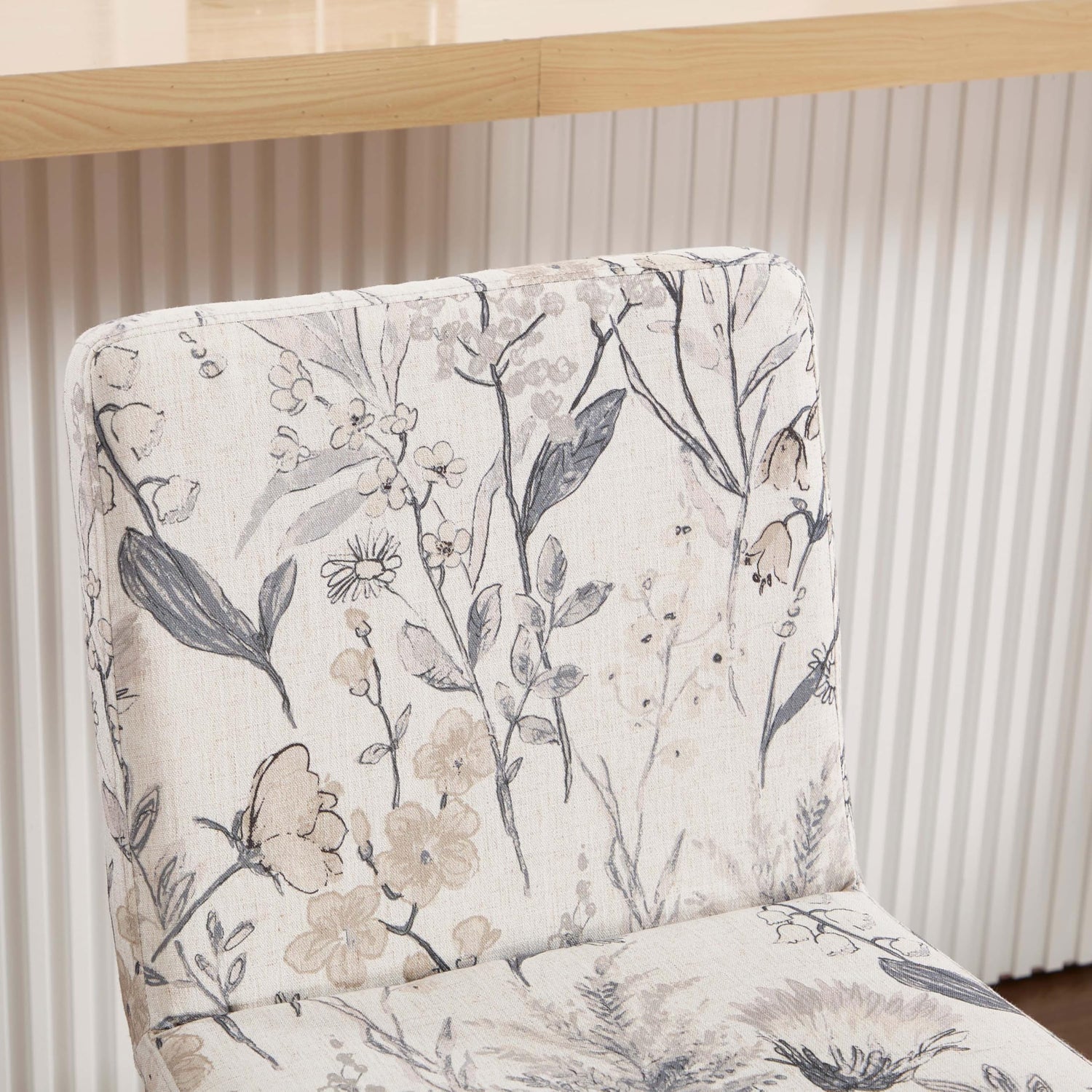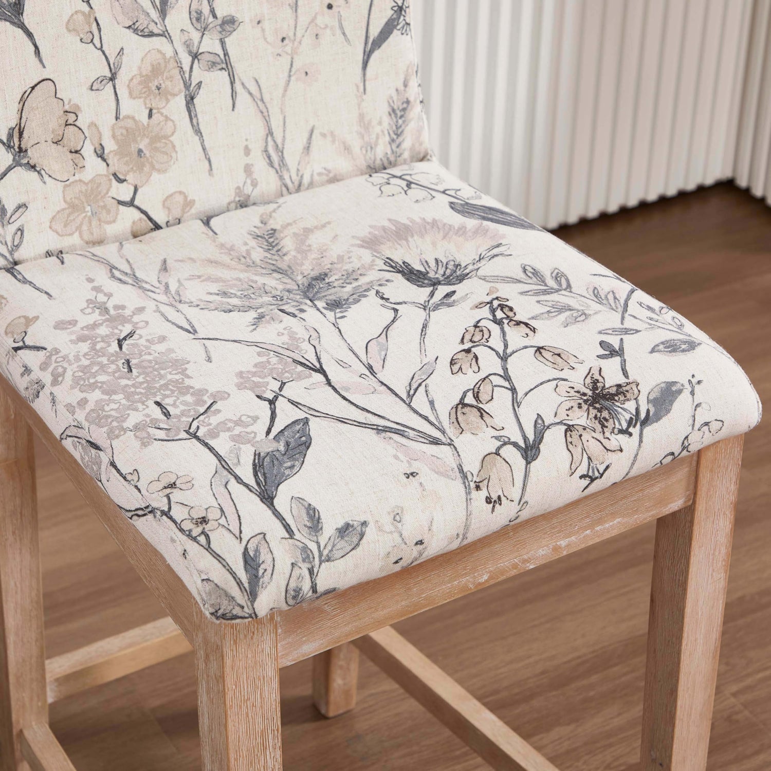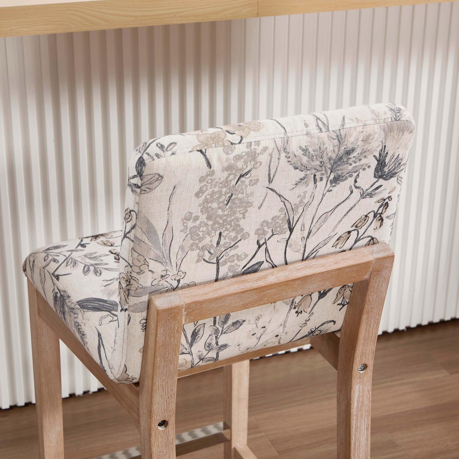 Kmax 26 Inch Bar Stools Set of 2, Farmhouse Upholstered Bar Stools with Back Support Rustic Wooden White Armless Barstools for Bar Club Pub - Linen, Floral Pattern